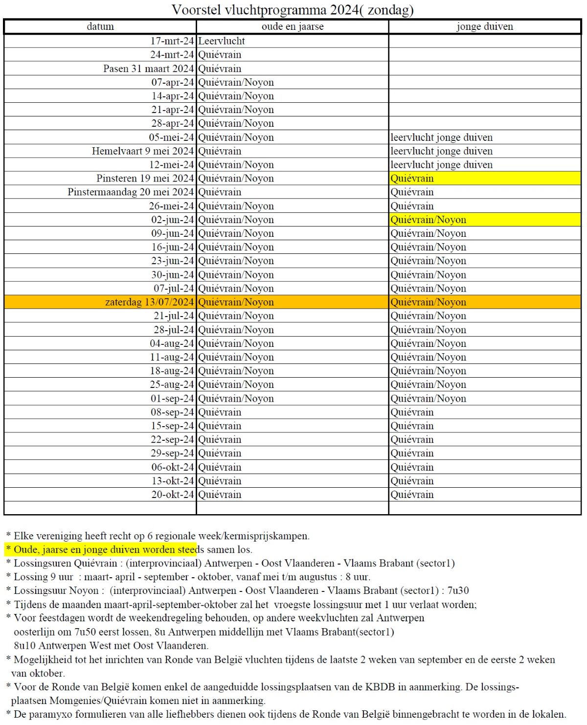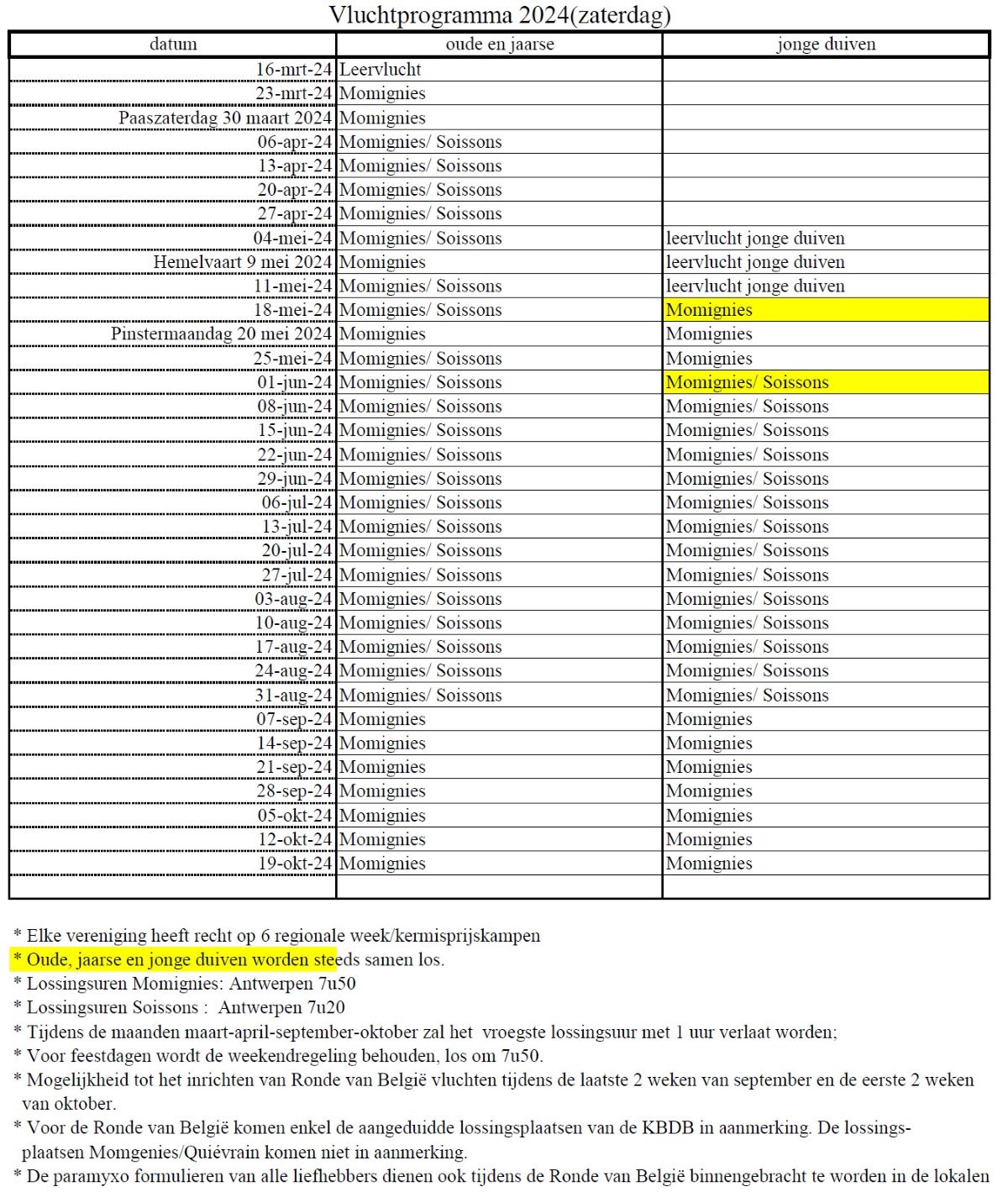 PE Antwerpen Voorstel vluchtprogramma 2024 Snelheid (zaterdag & zondag)