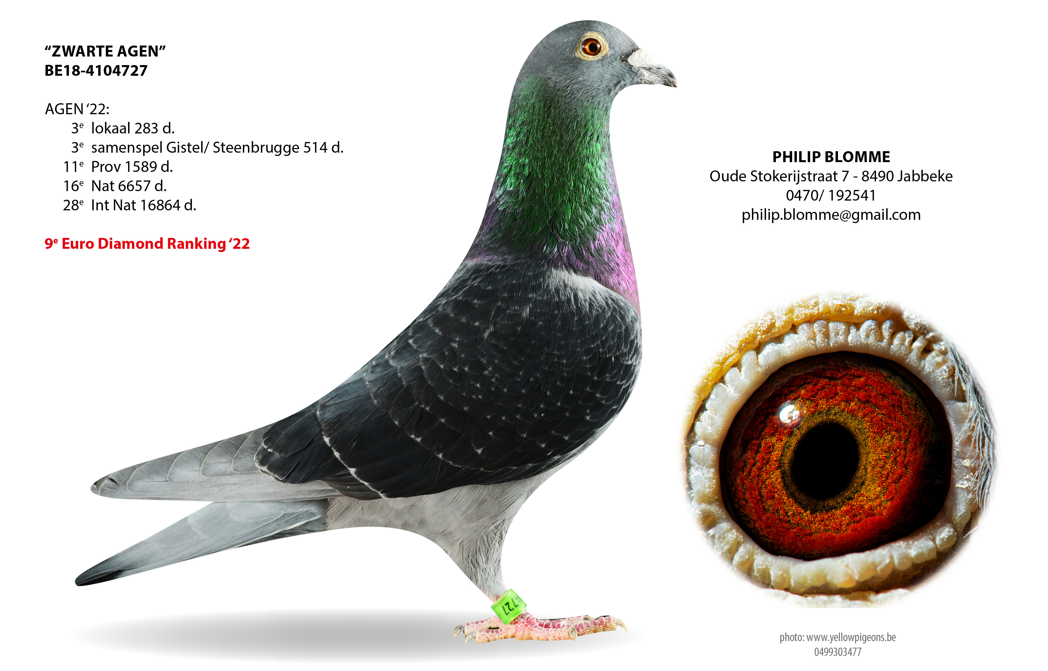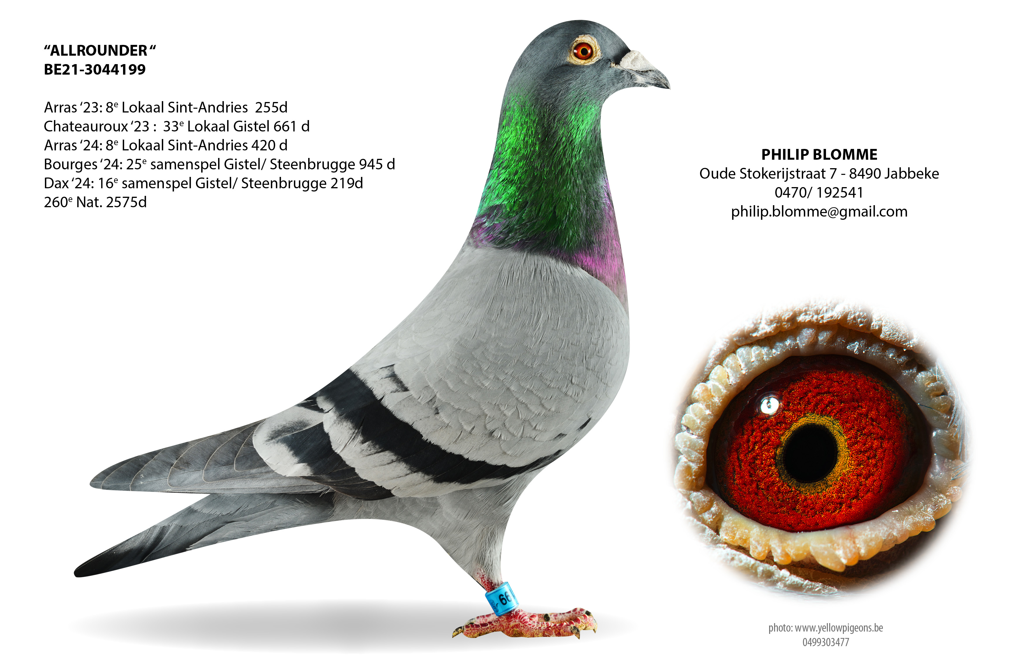 Toen Philip Blomme nog te Adegem woonde ging hij inkorven in de “Fondclub Steenbrugge”. Zo stuntte hij in 2012 op Cahors met de 1° en 2° prijs (met de 2EA) omzeggens samen op de plank met 10 minuten vooruit op de 133 concurrenten. Nationaal was dit goed voor 5e en 7e prijs tegen 8348 duiven. Dat was ook geen toeval want “Blauwe Cahors” & “Zwarte Cahors”waren twee crackduiven en hadden al meerdere topprestaties geleverd. Die toppers van toen werden verkocht en Philip verhuisde naar Jabbeke waar hij opnieuw bouwde aan een zware fond kolonie.
