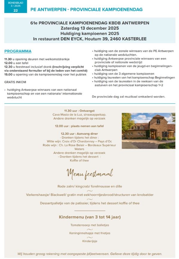 61e PROVINCIALE KAMPIOENENDAG KBDB ANTWERPEN Zaterdag 13 december 2025