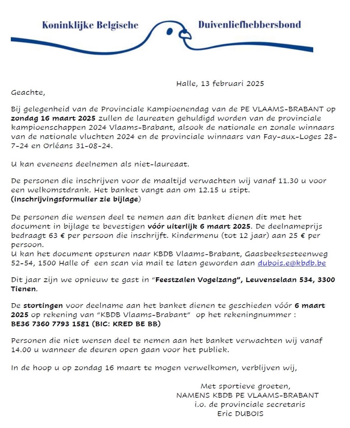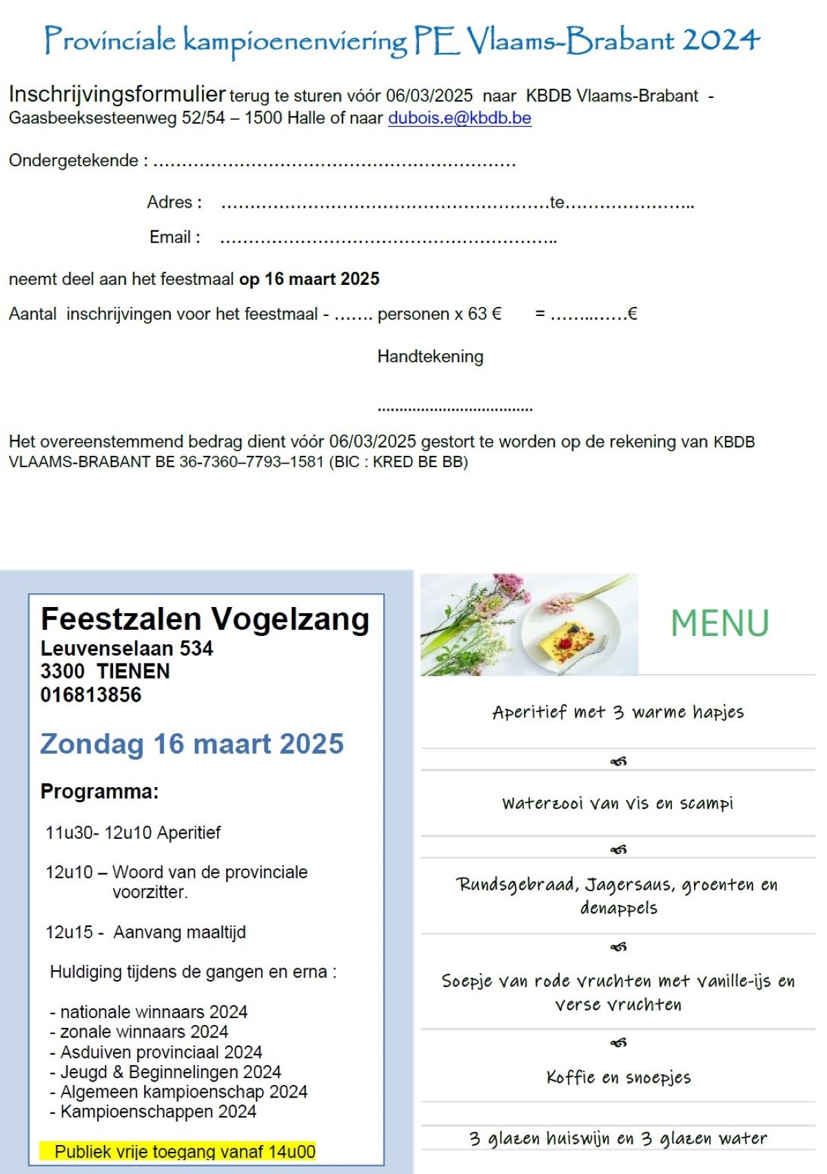 Provinciale kampioenenviering 2024 Vlaams-Brabant op 16-03-2025 Info & Inschrijving