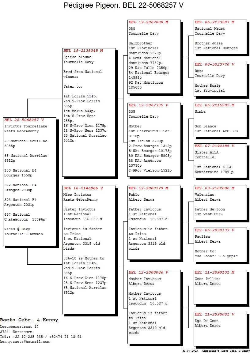 "Invictus Tournelleke" BE22-5068257 orig. Raets Gebr & Kenny!