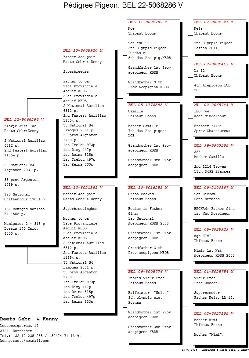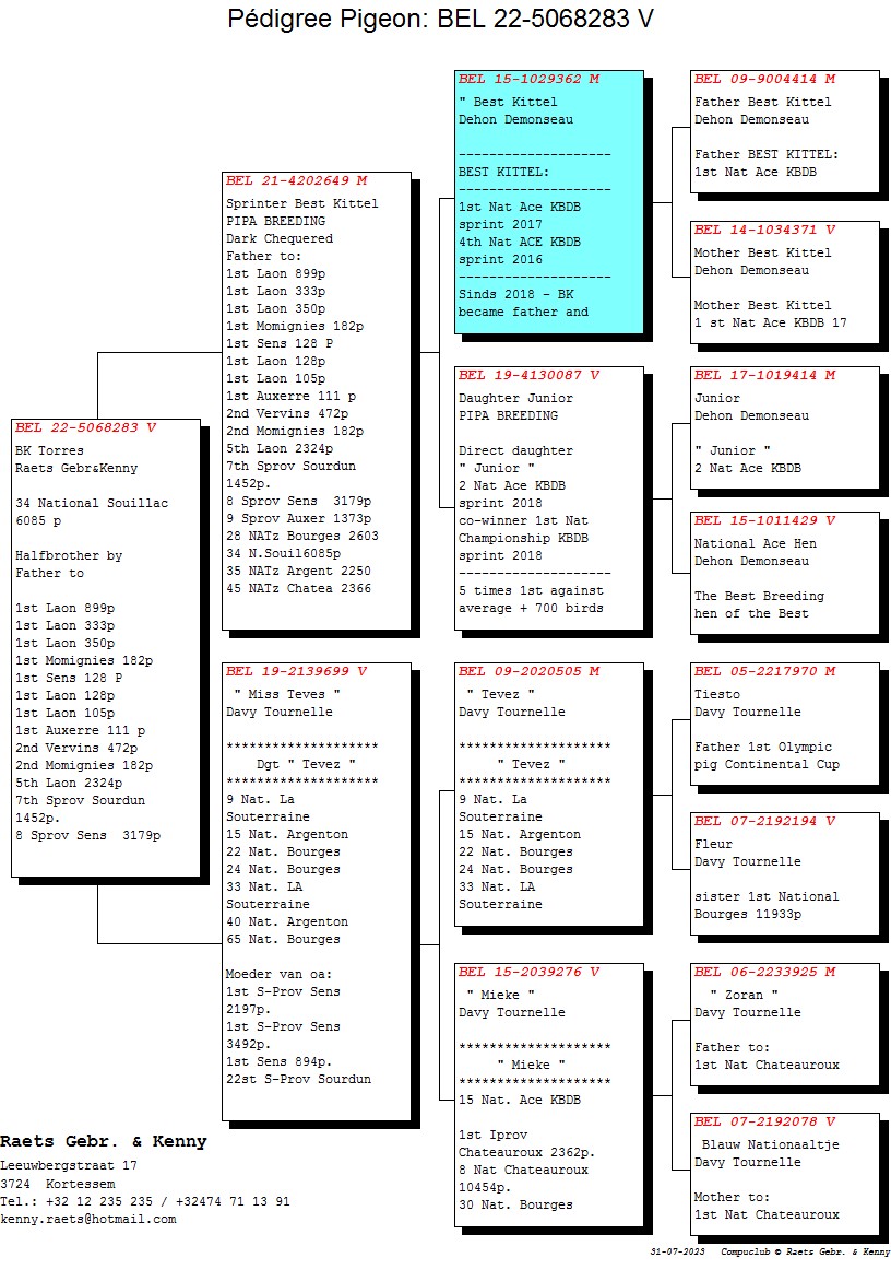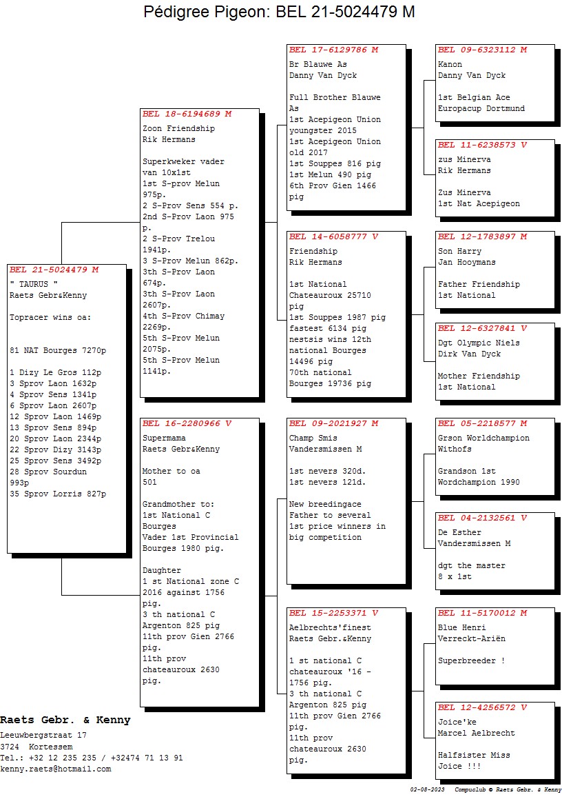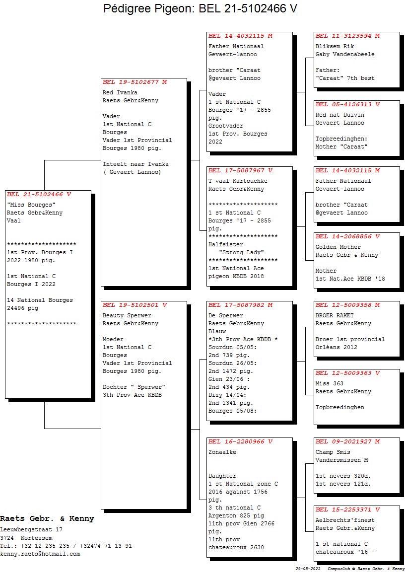 In 2022 werd “Den Dure Diamant – alias Ramses ” aangekocht bij fam. Eijerkamp die vader is van verschillende toppers op eigen hok en grootvader is van de “ Eijerkamp Diamant” met volgende resultaten: