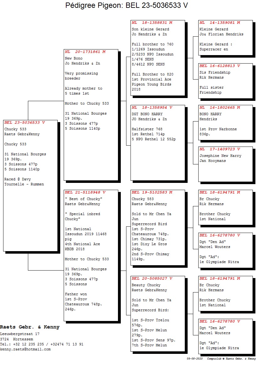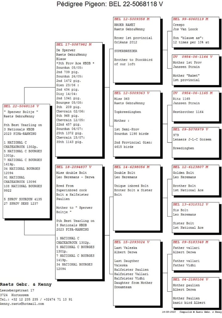 Van 2017 tot 2024 niet minder dan 102 eerste prijzen in het SEMI-Provinciale samenspel Zuid-Oost Limburg, 1e Nationale Asduif, 1e Provinciaal Kampioen zware Hafo, 1e en 3e provinciale asduiven, provinciale en zonale overwinningen en topreferenties bij de vleet, ook op andere hokken... Te mooi voor woorden en te veel om op te noemen! Deze absolute wereldklasse is nu tijdelijk binnen handbereik voor de snelle beslissers!
