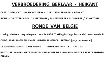 Info Verbroedering BERLAAR HEIKANT RONDE VAN BELGIE zat 21-28 sept & 5-12 okt