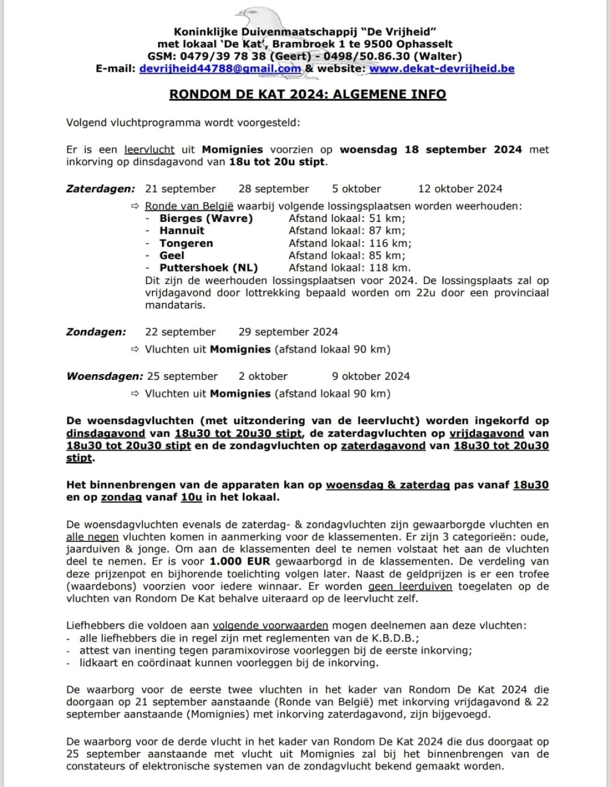 Info Kat OPHASSELT RONDE VAN BELGIE zat 21-28 sept & 5-12 okt