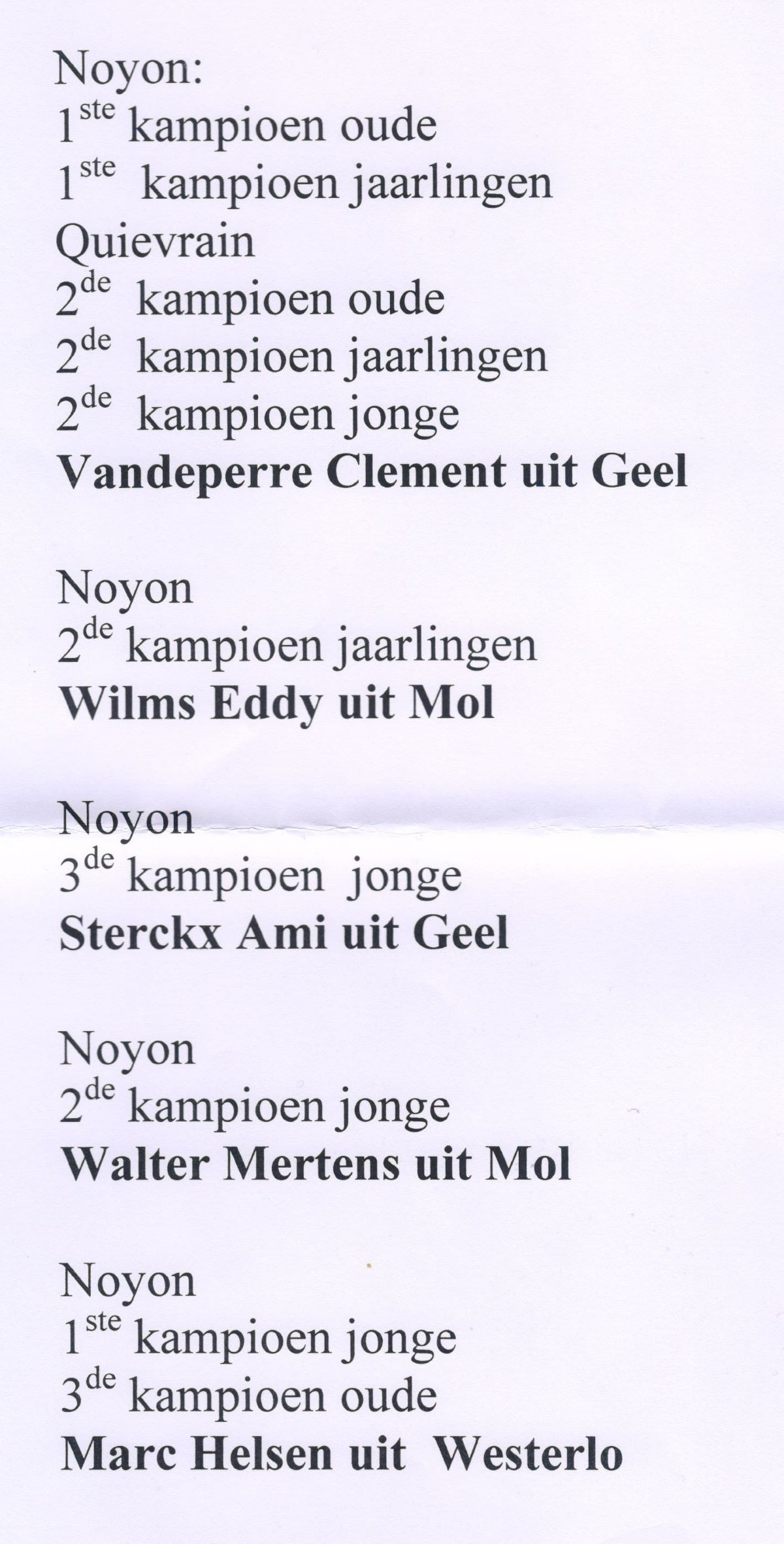 Kampioen Oude duiven Noyon: Clement Vandeperre