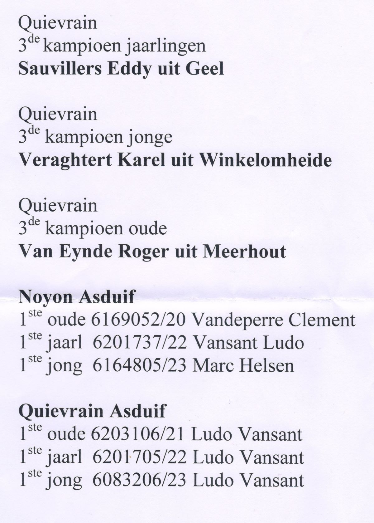 Asduif Jonge duiven Quievrain: Ludo Vansant