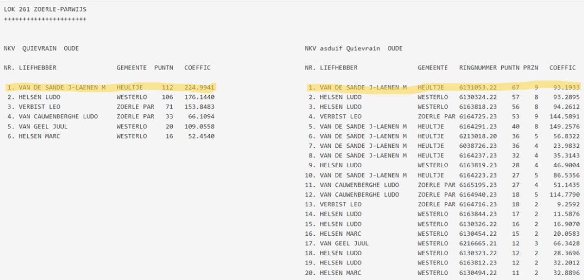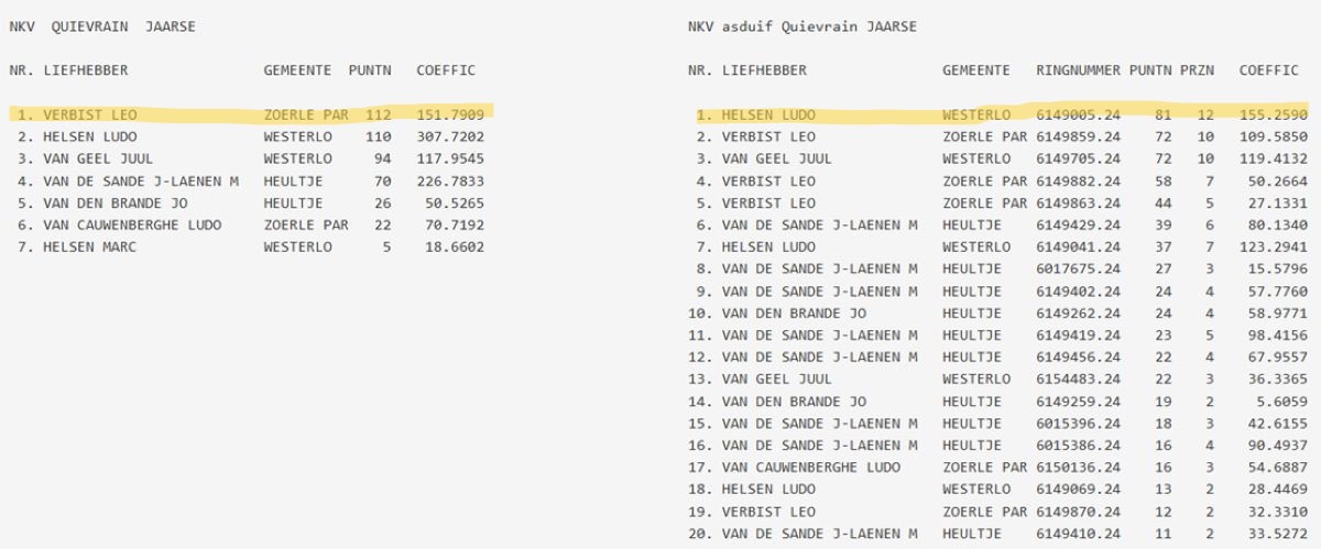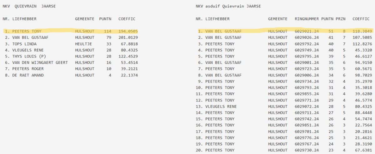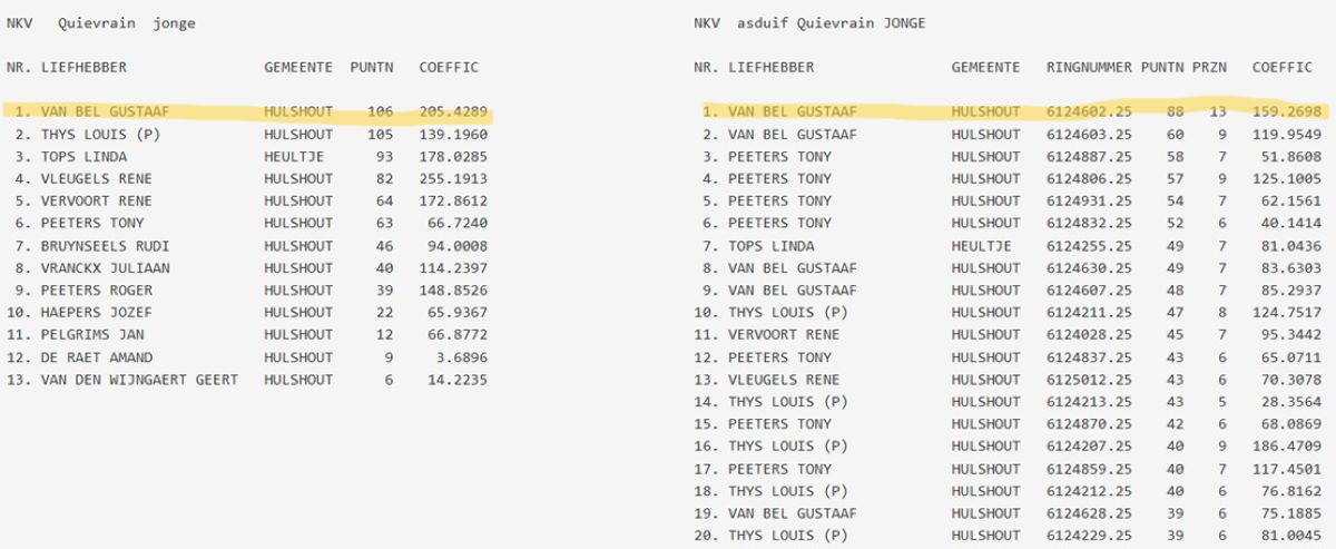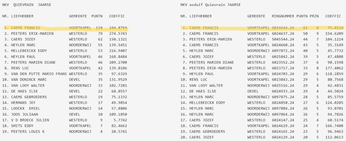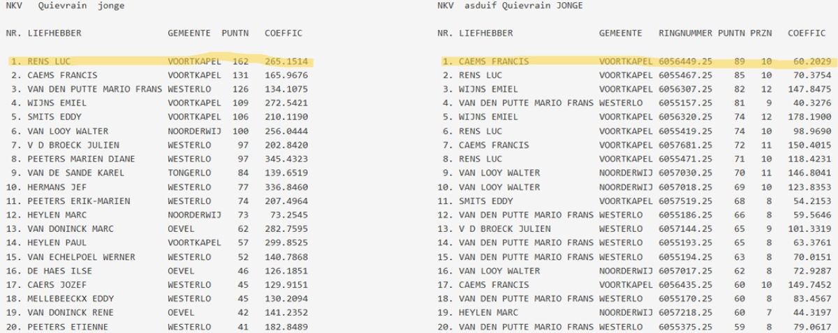 samenspel NKV (NIEUW KEMPISCH VERBOND): drachtenlijst Quievrain 2026 - kampioenschappen Quievrain 2025