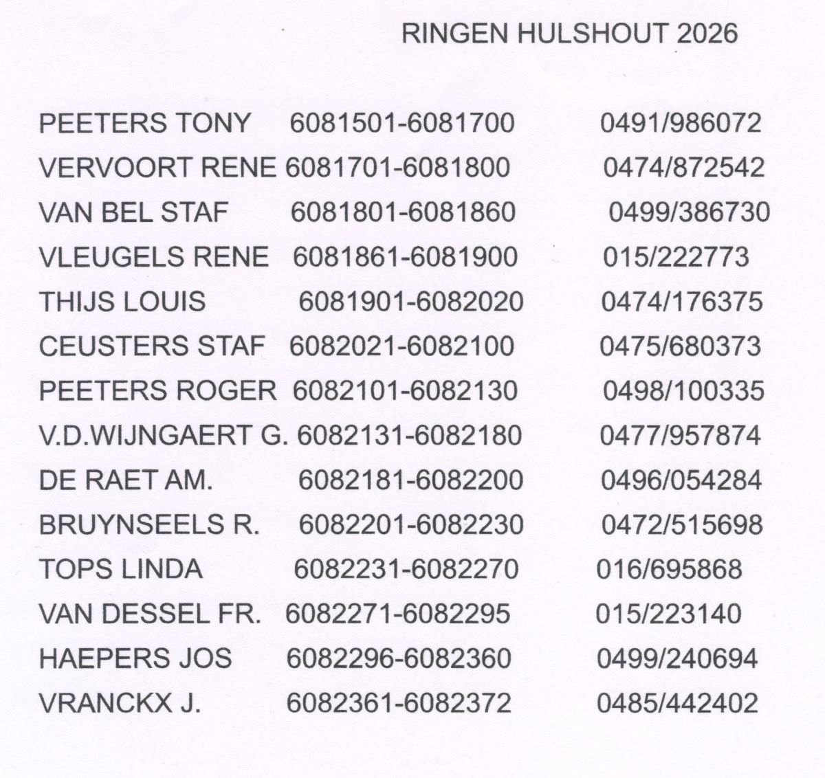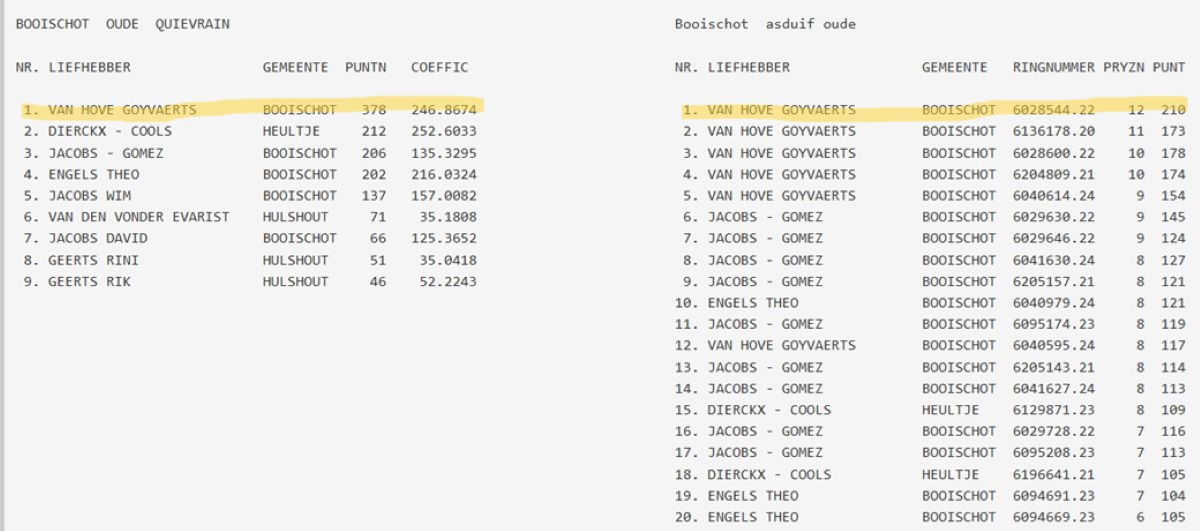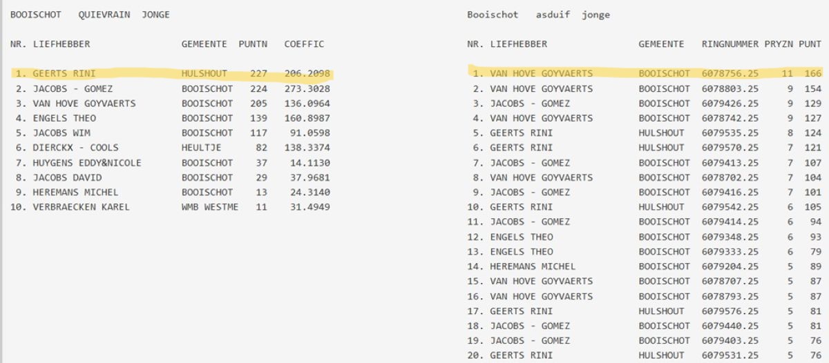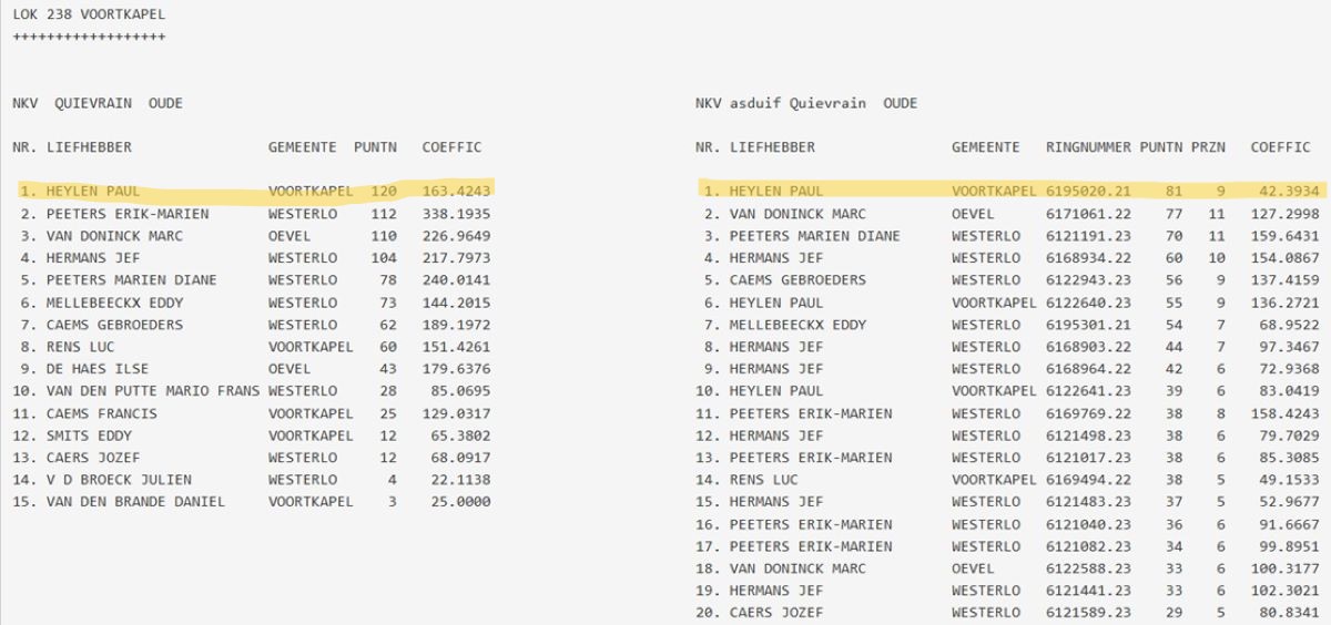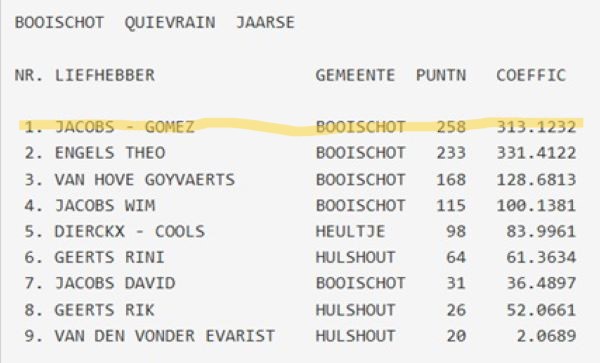 samenspel NKV (NIEUW KEMPISCH VERBOND): drachtenlijst Quievrain 2026 - kampioenschappen Quievrain 2025