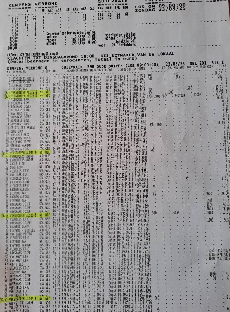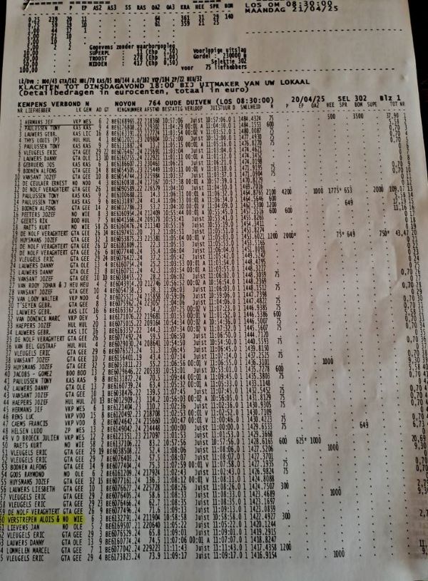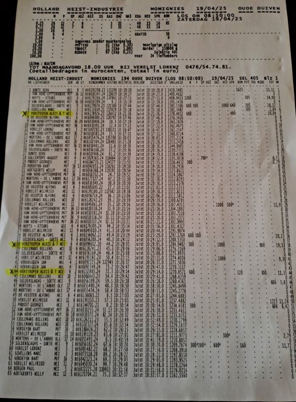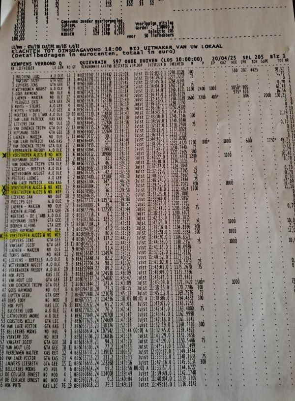 FB 2025-04-22 Tom Verstrepen > De echte vroege kopprijzen blijven uit in het Samenspel maar in de Club zijn er wel kopprijzen. We zijn wel tevreden van dit weekend met 27 gezette alles bij èèn en 18 prijzen.