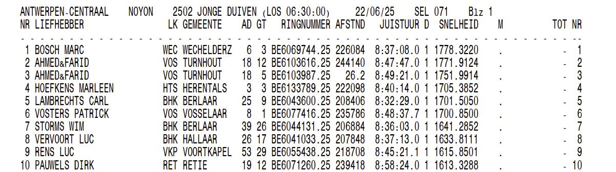 - 4e Kampioen Jonge duiven 1-2e-3 get Noyon 2025 ANTWERPEN CENTRAAL