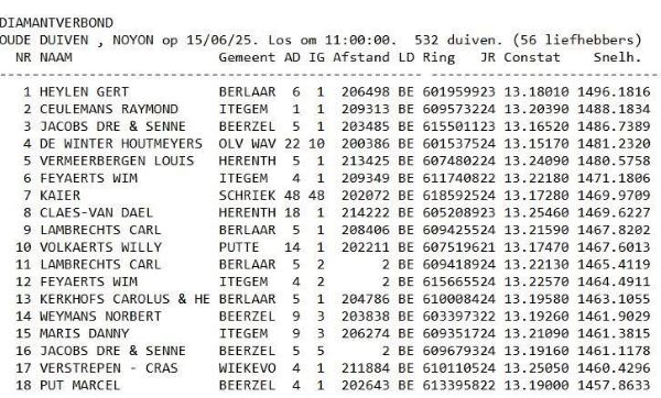 - 9e Noyon 15/06/25 DIAMANTVERBOND (532 ou+ja) & 5-6e Noyon 15/06/25 DIAMANTVERBOND (316 ja) -