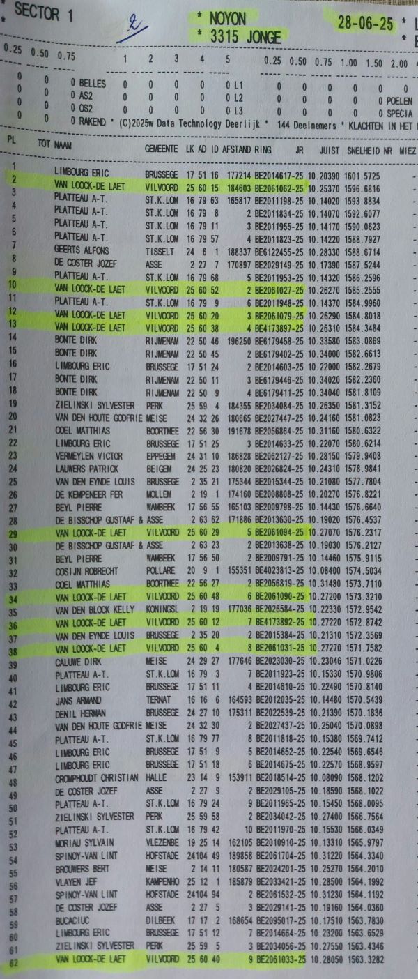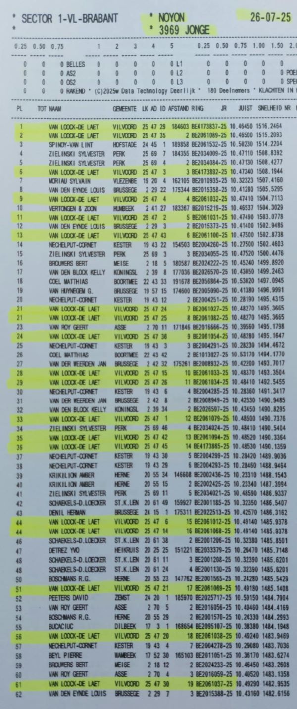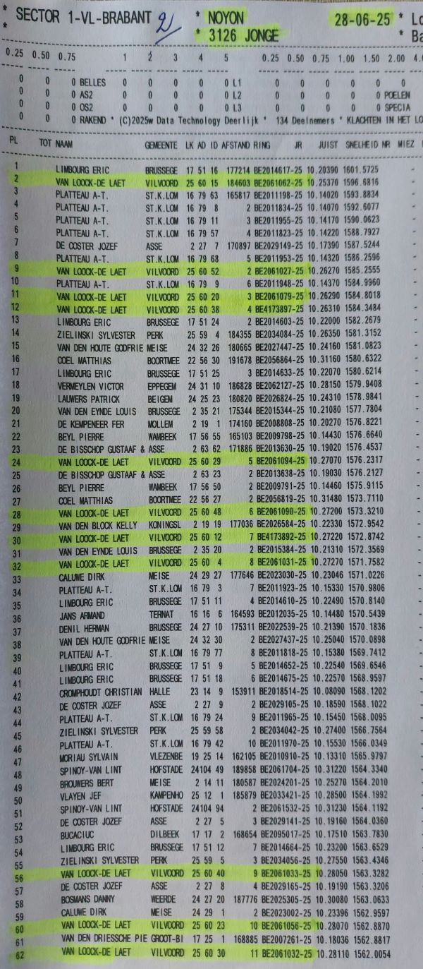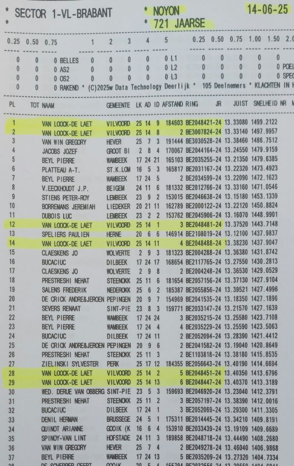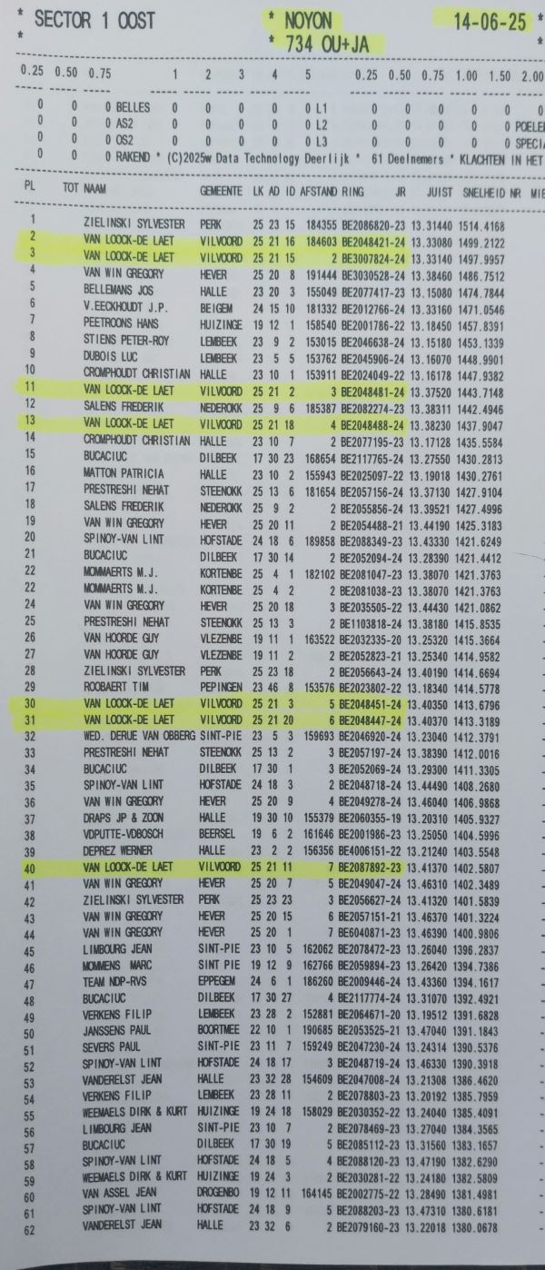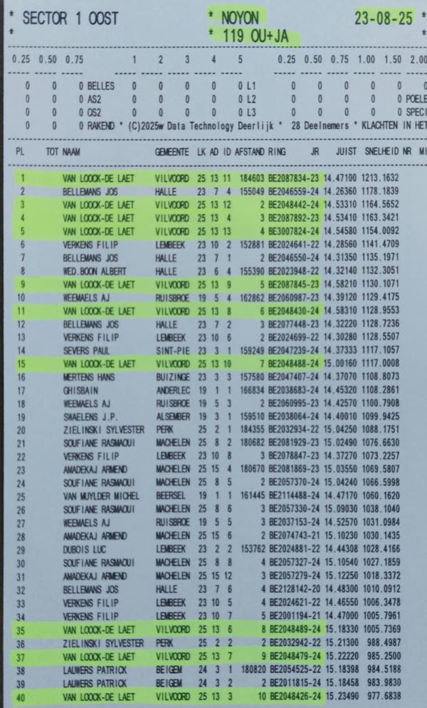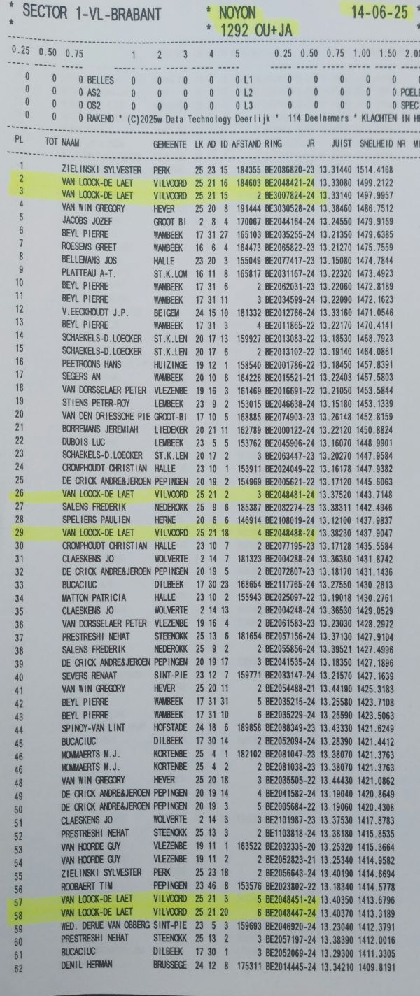 - 6e Noyon 8/06/25 SECTOR 1 (1.723 ou+ja) & 4e Noyon 8/06/25 SECTOR 1 VL-BR (1.595 ou+ja) & 8-9e Noyon 8/06/25 SECTOR 1 VL-BR (945 ja) & 4-6-7e Noyon 8/06/25 SECTOR 1 VL-BR OOST (824 ou+ja) & 3-4e Noyon 8/06/25 SECTOR 1 VL-BR OOST (502 ja) & 3-5-6e Noyon 8/06/25 Woluwe Center ST-STEVENS-WOLUWE (129 ou+ja) & 2-3-6-7e Noyon 8/06/25 Woluwe Center ST-STEVENS-WOLUWE (78 ja)
