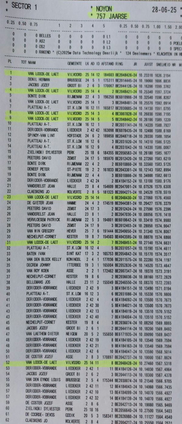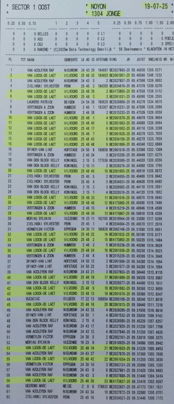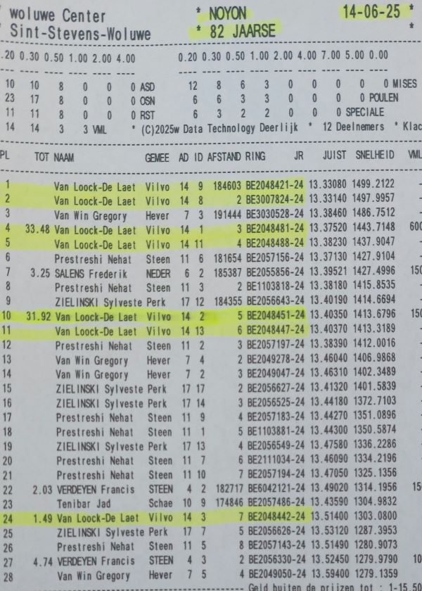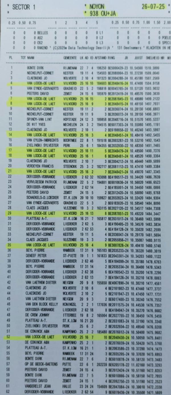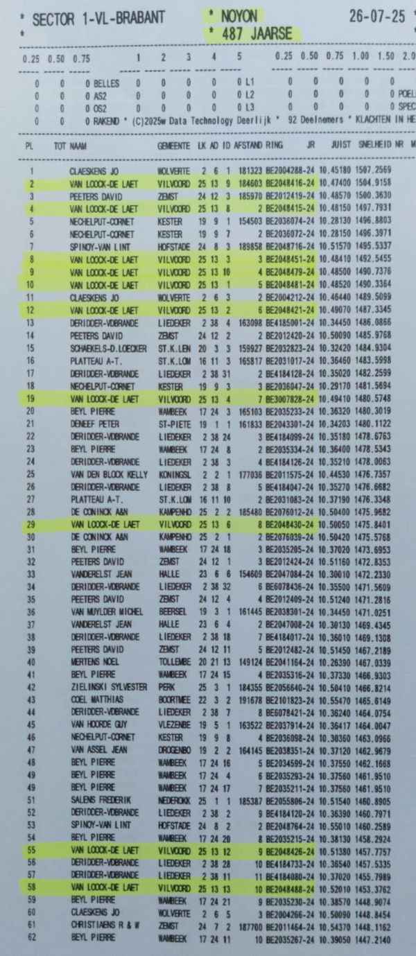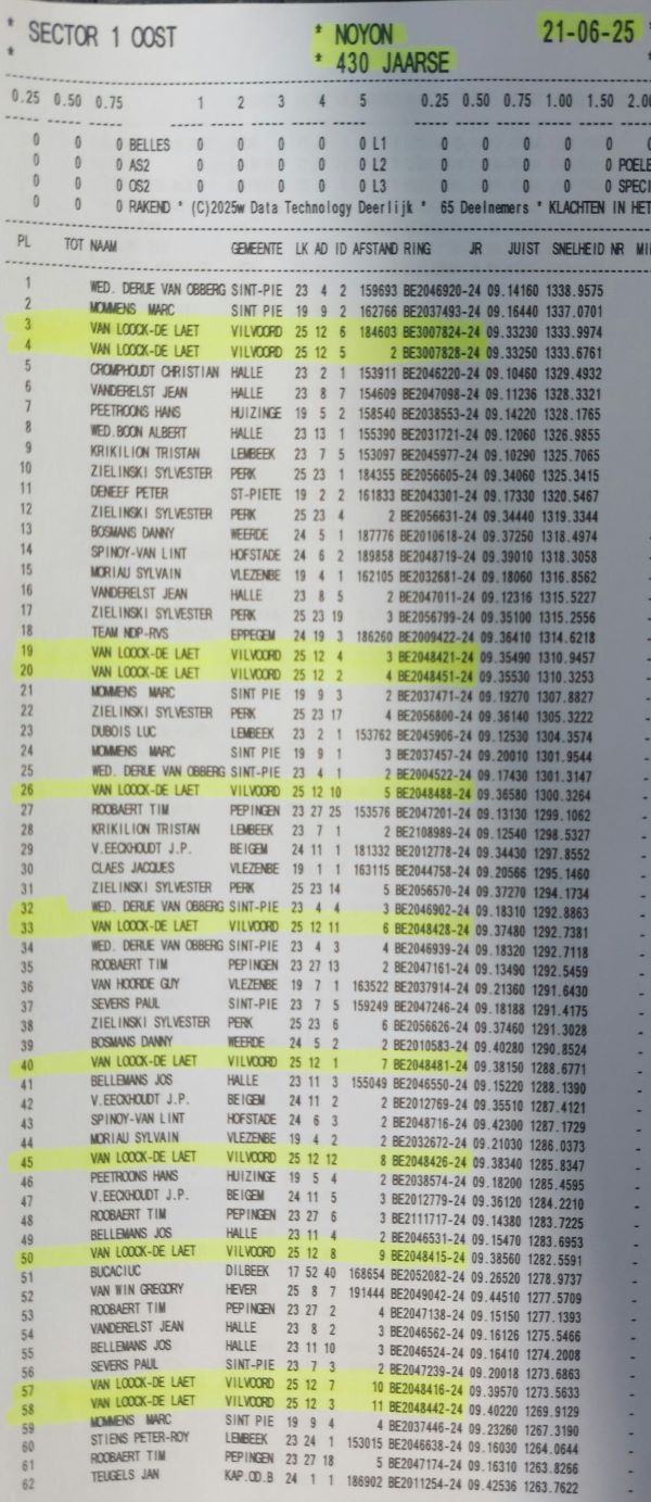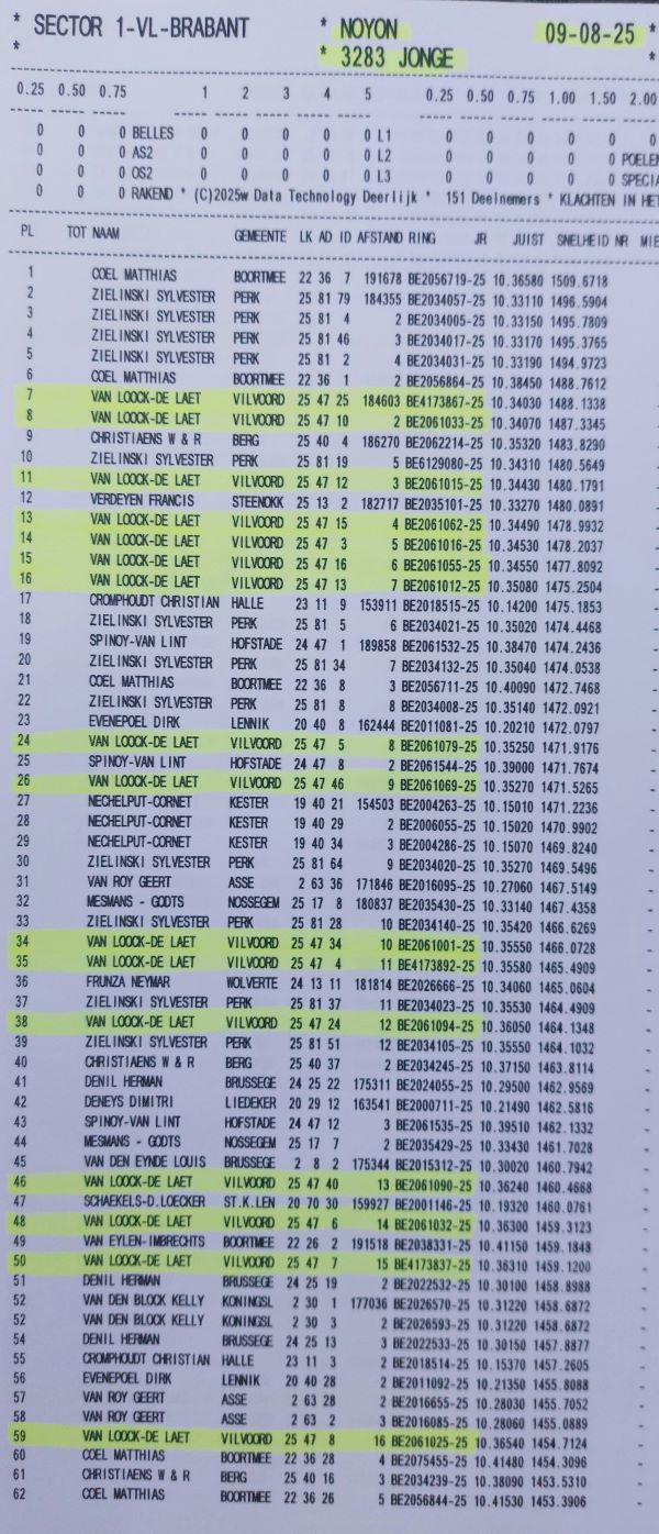 - 6e Noyon 8/06/25 SECTOR 1 (1.723 ou+ja) & 4e Noyon 8/06/25 SECTOR 1 VL-BR (1.595 ou+ja) & 8-9e Noyon 8/06/25 SECTOR 1 VL-BR (945 ja) & 4-6-7e Noyon 8/06/25 SECTOR 1 VL-BR OOST (824 ou+ja) & 3-4e Noyon 8/06/25 SECTOR 1 VL-BR OOST (502 ja) & 3-5-6e Noyon 8/06/25 Woluwe Center ST-STEVENS-WOLUWE (129 ou+ja) & 2-3-6-7e Noyon 8/06/25 Woluwe Center ST-STEVENS-WOLUWE (78 ja)