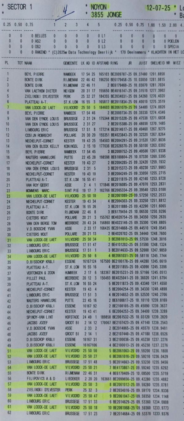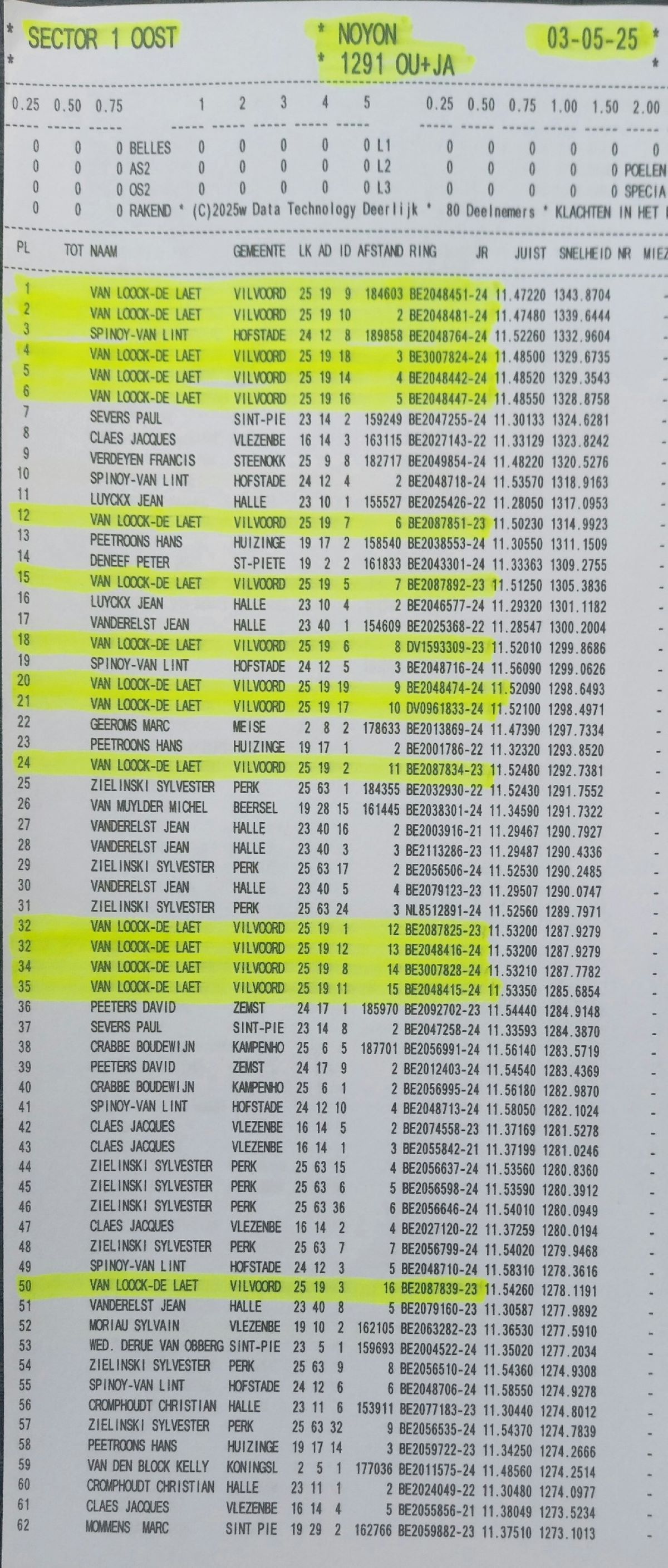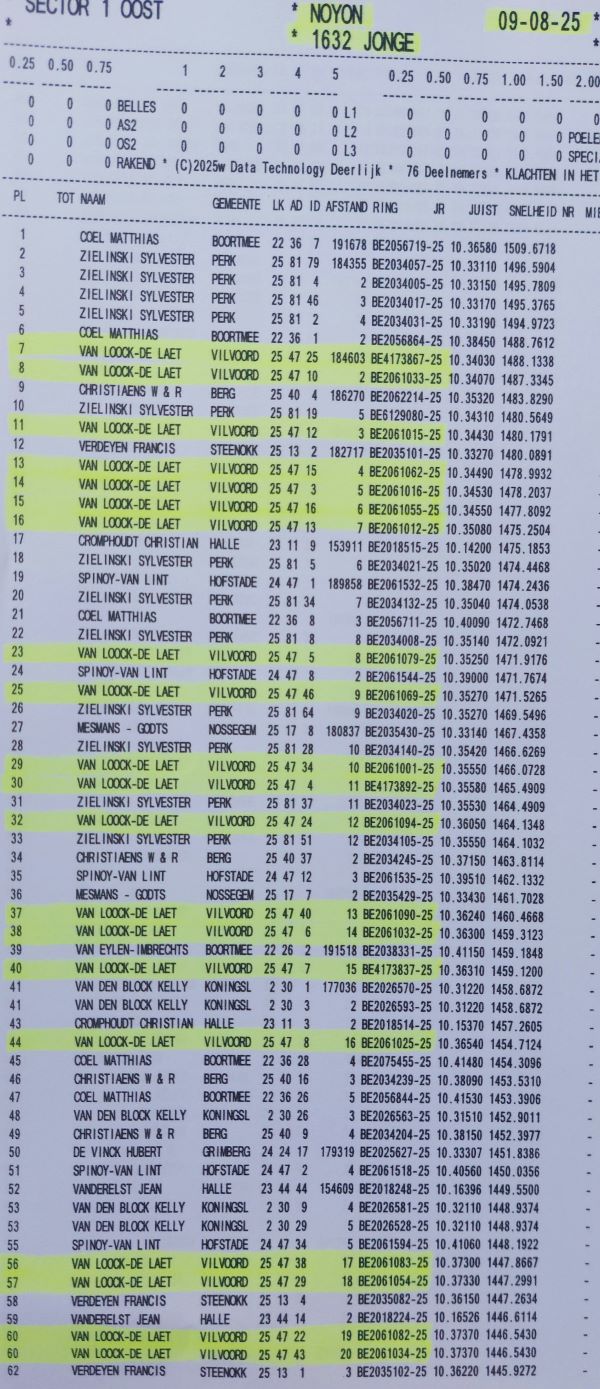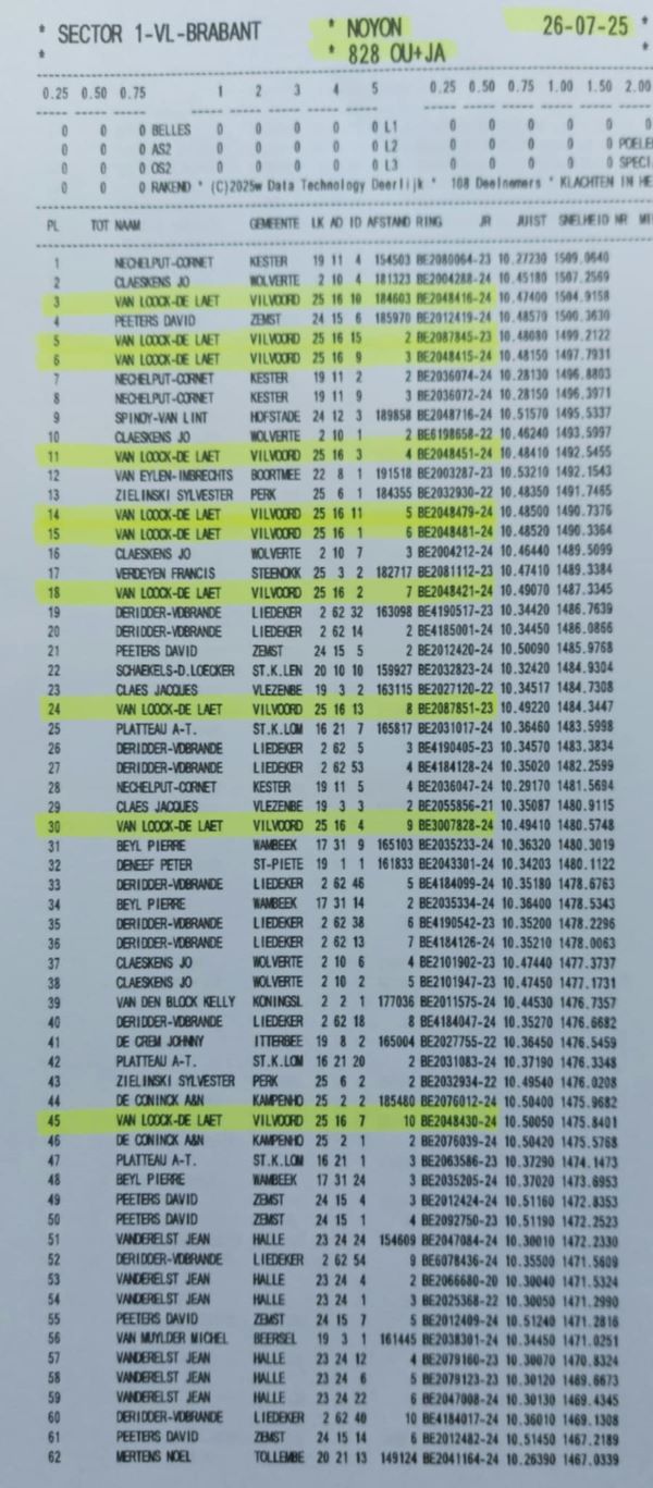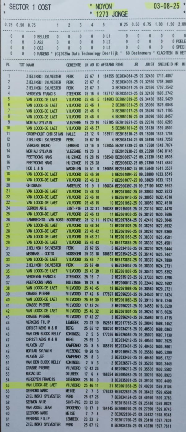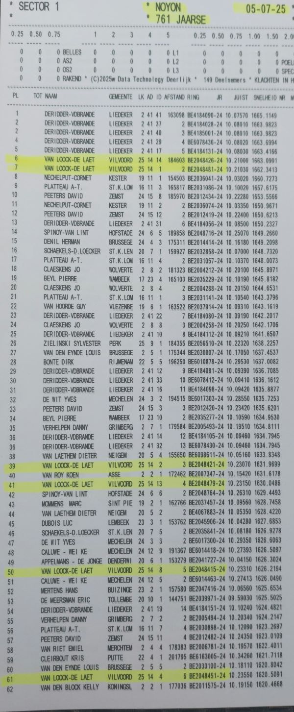 - 6e Noyon 8/06/25 SECTOR 1 (1.723 ou+ja) & 4e Noyon 8/06/25 SECTOR 1 VL-BR (1.595 ou+ja) & 8-9e Noyon 8/06/25 SECTOR 1 VL-BR (945 ja) & 4-6-7e Noyon 8/06/25 SECTOR 1 VL-BR OOST (824 ou+ja) & 3-4e Noyon 8/06/25 SECTOR 1 VL-BR OOST (502 ja) & 3-5-6e Noyon 8/06/25 Woluwe Center ST-STEVENS-WOLUWE (129 ou+ja) & 2-3-6-7e Noyon 8/06/25 Woluwe Center ST-STEVENS-WOLUWE (78 ja)