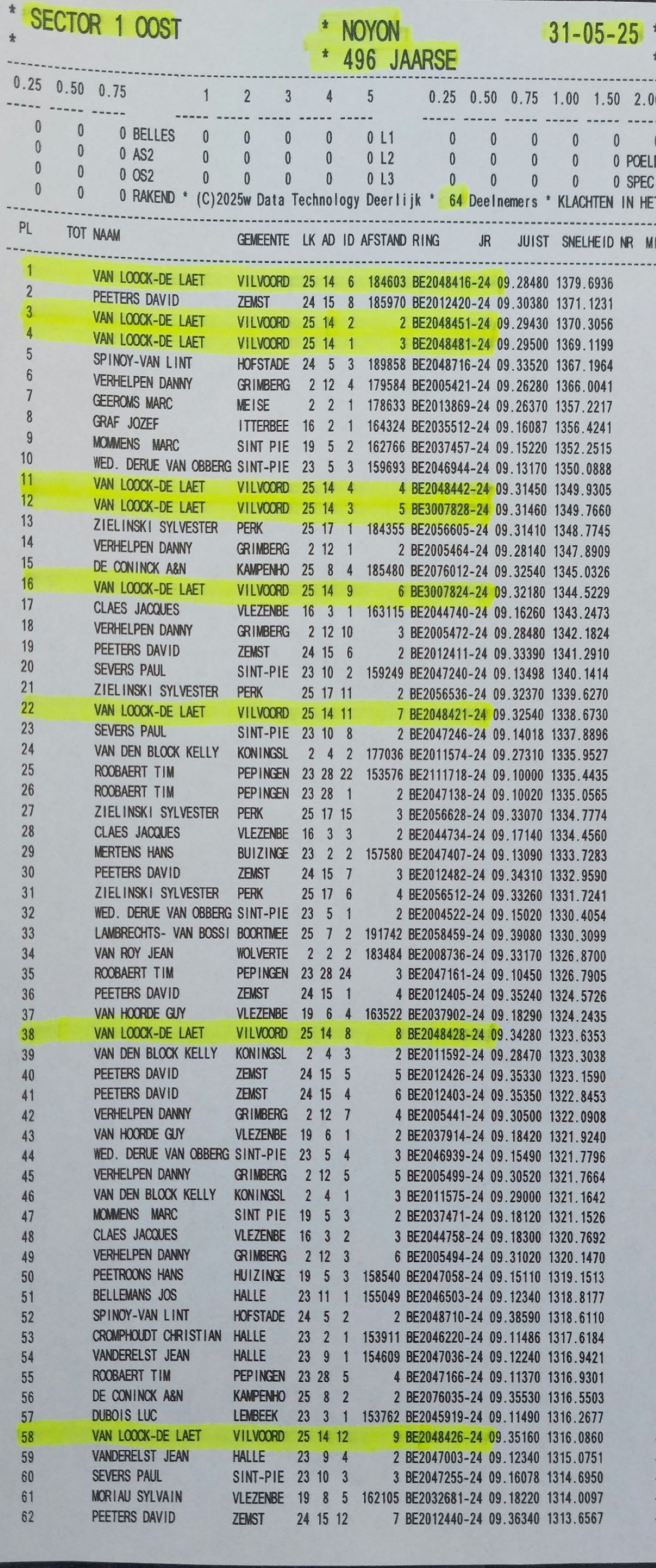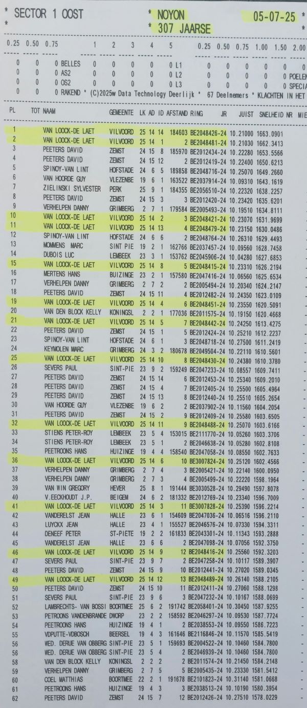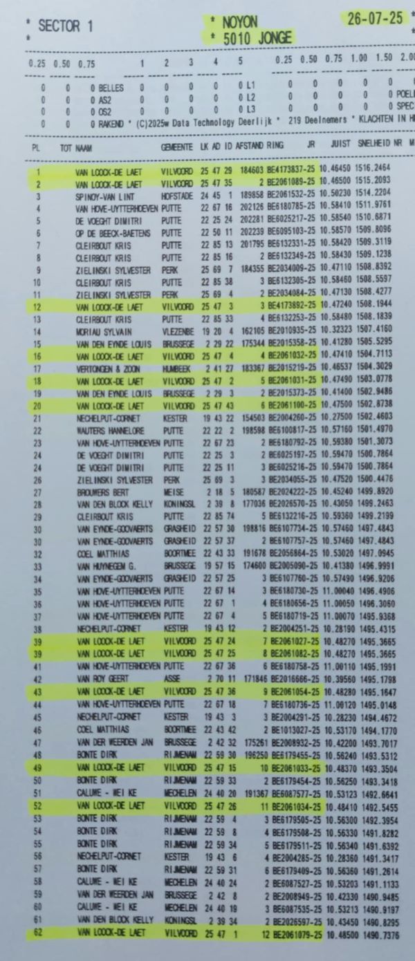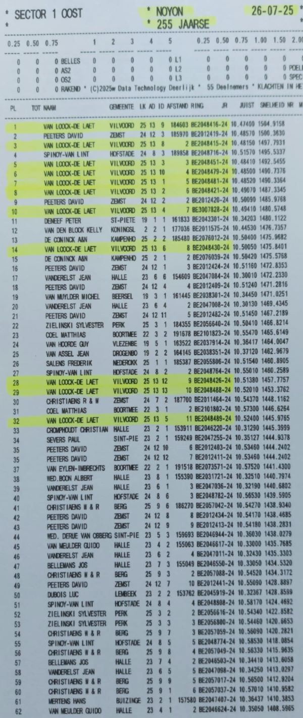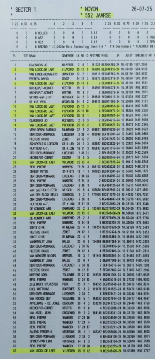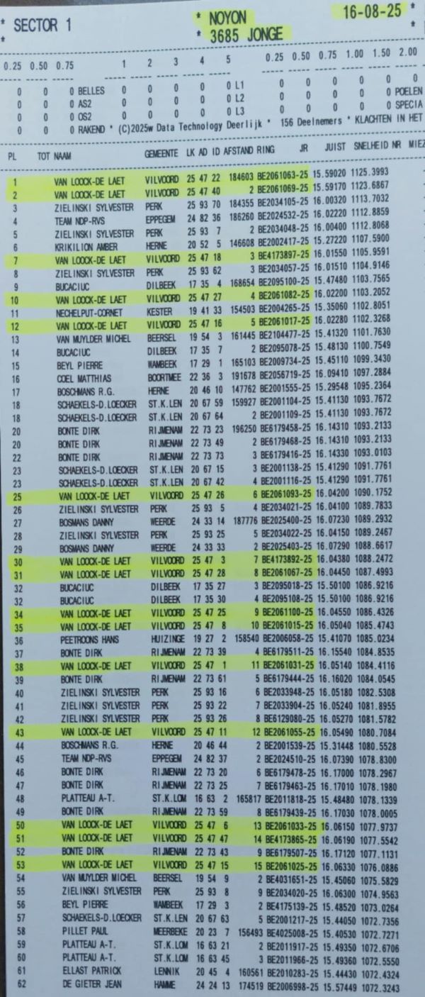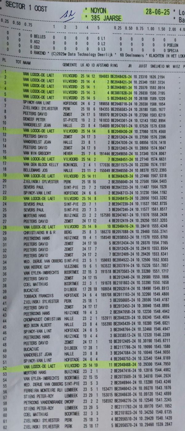 - 6e Noyon 8/06/25 SECTOR 1 (1.723 ou+ja) & 4e Noyon 8/06/25 SECTOR 1 VL-BR (1.595 ou+ja) & 8-9e Noyon 8/06/25 SECTOR 1 VL-BR (945 ja) & 4-6-7e Noyon 8/06/25 SECTOR 1 VL-BR OOST (824 ou+ja) & 3-4e Noyon 8/06/25 SECTOR 1 VL-BR OOST (502 ja) & 3-5-6e Noyon 8/06/25 Woluwe Center ST-STEVENS-WOLUWE (129 ou+ja) & 2-3-6-7e Noyon 8/06/25 Woluwe Center ST-STEVENS-WOLUWE (78 ja)