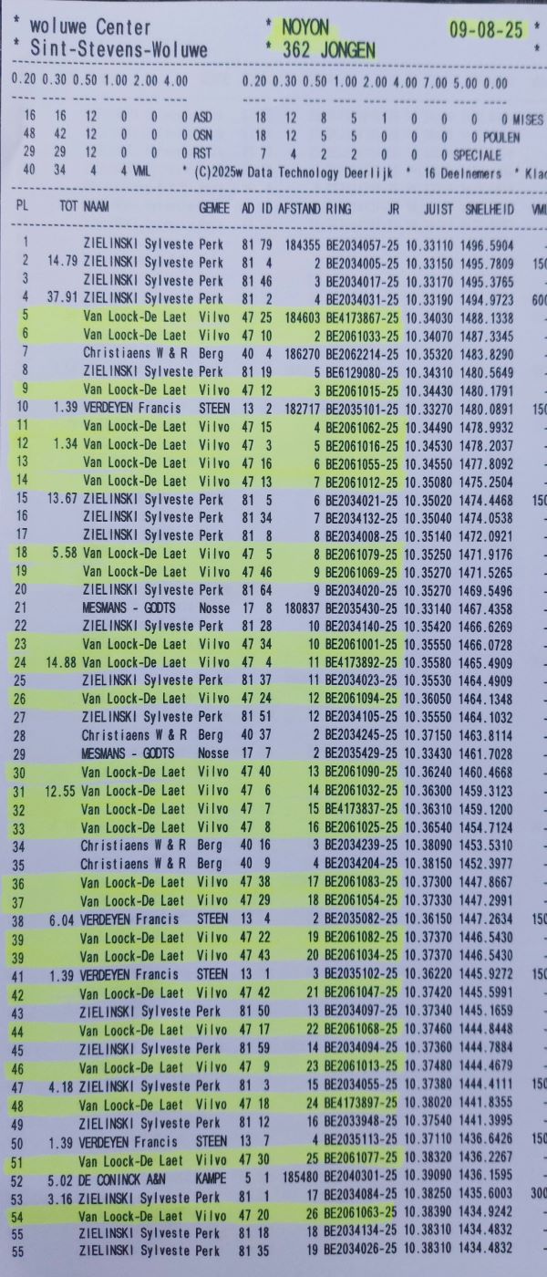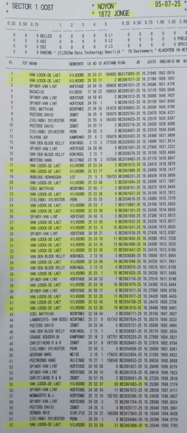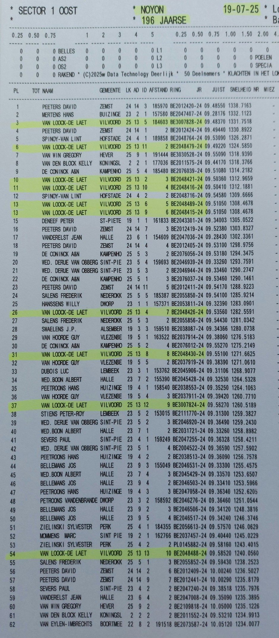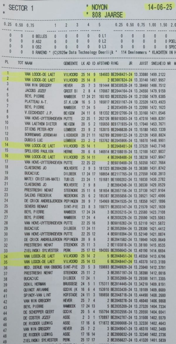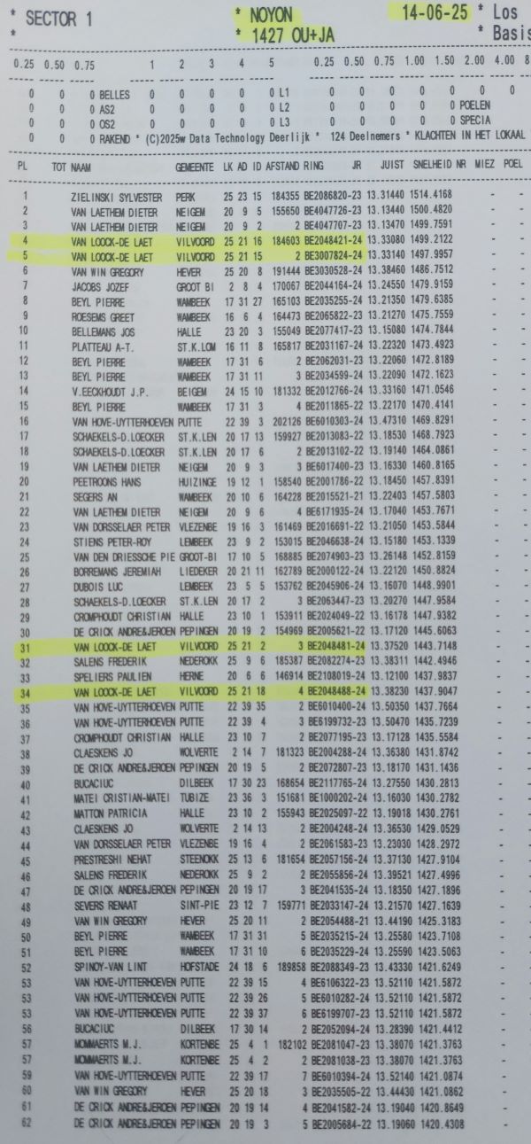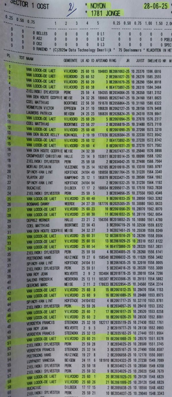 - 6e Noyon 8/06/25 SECTOR 1 (1.723 ou+ja) & 4e Noyon 8/06/25 SECTOR 1 VL-BR (1.595 ou+ja) & 8-9e Noyon 8/06/25 SECTOR 1 VL-BR (945 ja) & 4-6-7e Noyon 8/06/25 SECTOR 1 VL-BR OOST (824 ou+ja) & 3-4e Noyon 8/06/25 SECTOR 1 VL-BR OOST (502 ja) & 3-5-6e Noyon 8/06/25 Woluwe Center ST-STEVENS-WOLUWE (129 ou+ja) & 2-3-6-7e Noyon 8/06/25 Woluwe Center ST-STEVENS-WOLUWE (78 ja)