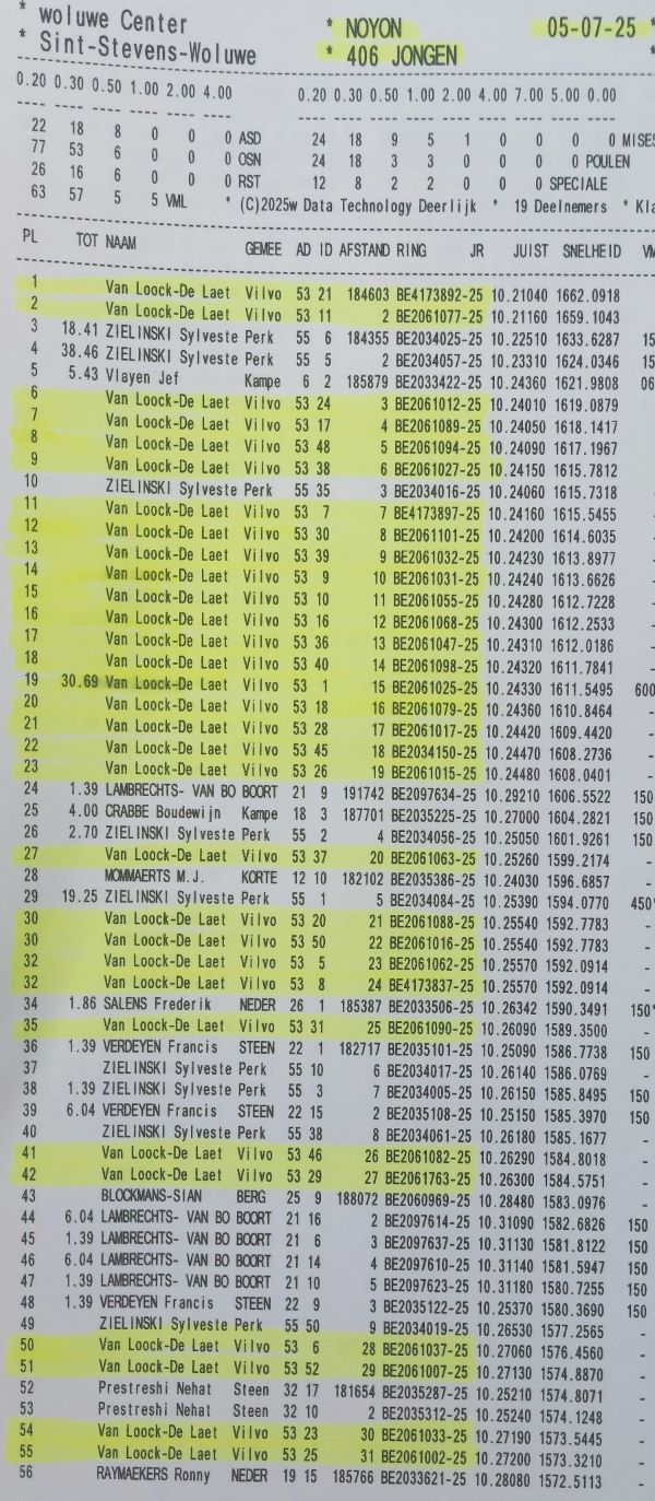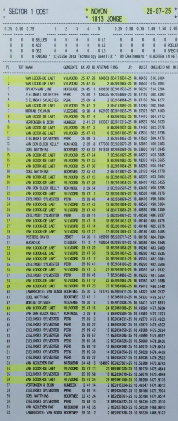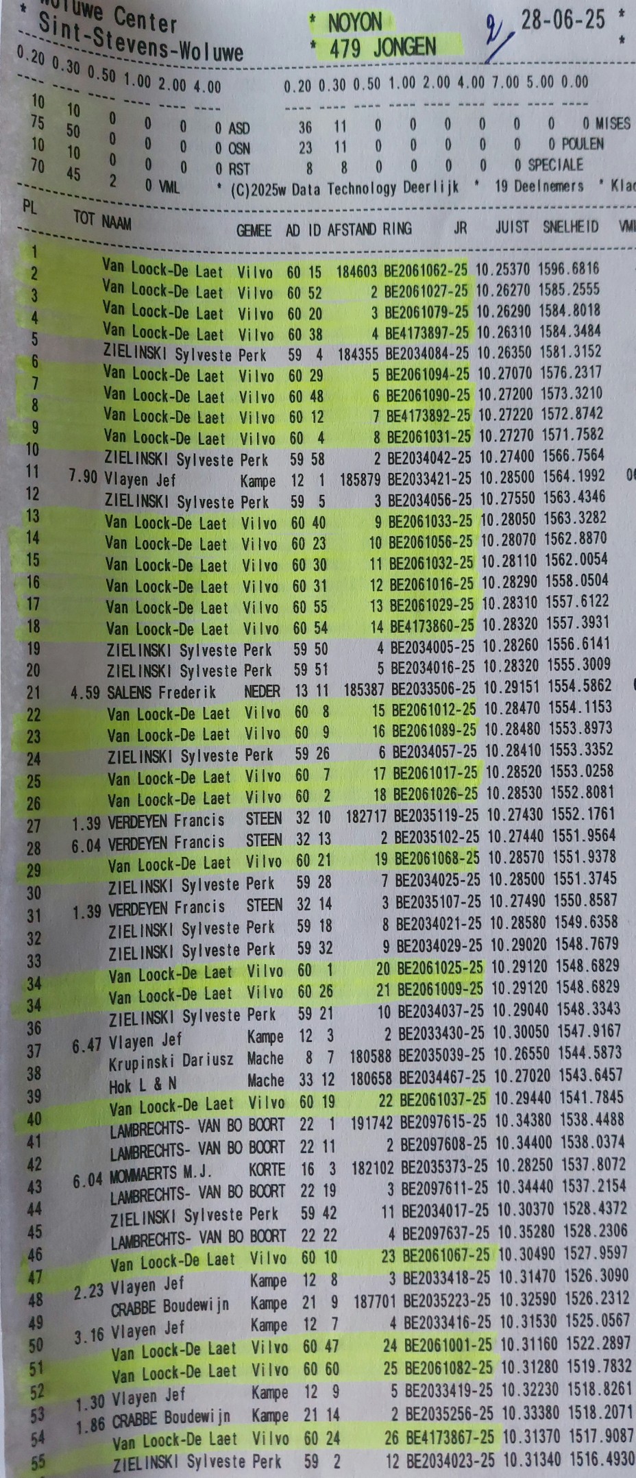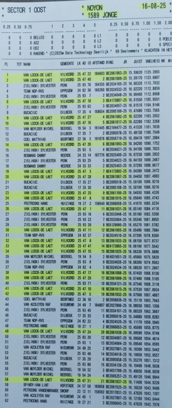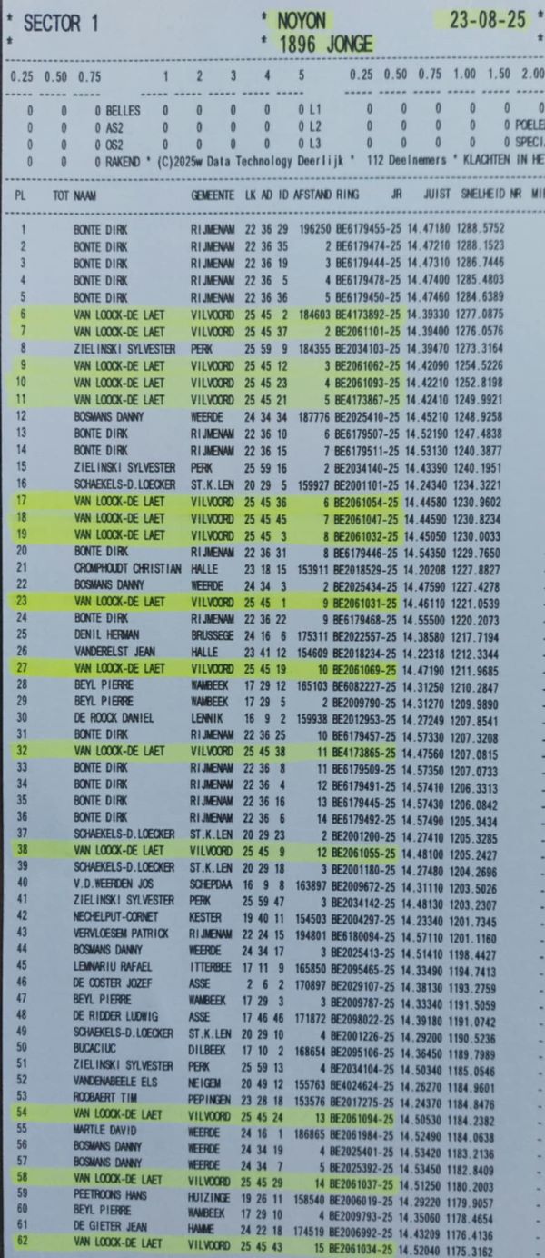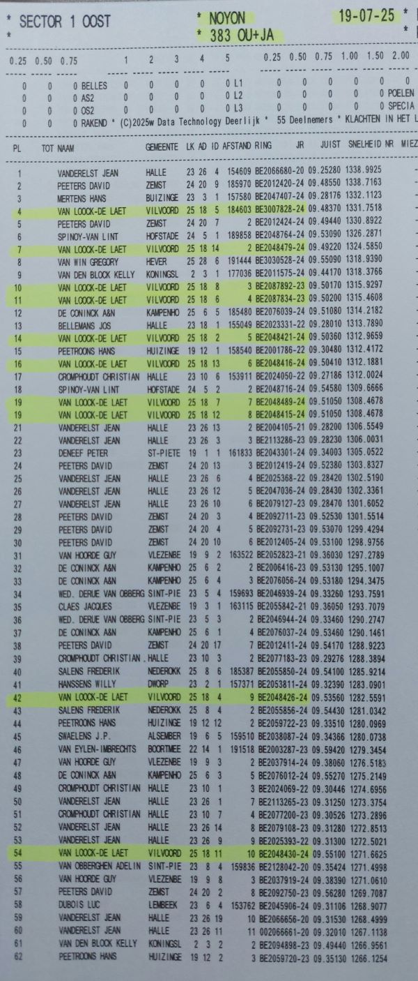 - 6e Noyon 8/06/25 SECTOR 1 (1.723 ou+ja) & 4e Noyon 8/06/25 SECTOR 1 VL-BR (1.595 ou+ja) & 8-9e Noyon 8/06/25 SECTOR 1 VL-BR (945 ja) & 4-6-7e Noyon 8/06/25 SECTOR 1 VL-BR OOST (824 ou+ja) & 3-4e Noyon 8/06/25 SECTOR 1 VL-BR OOST (502 ja) & 3-5-6e Noyon 8/06/25 Woluwe Center ST-STEVENS-WOLUWE (129 ou+ja) & 2-3-6-7e Noyon 8/06/25 Woluwe Center ST-STEVENS-WOLUWE (78 ja)