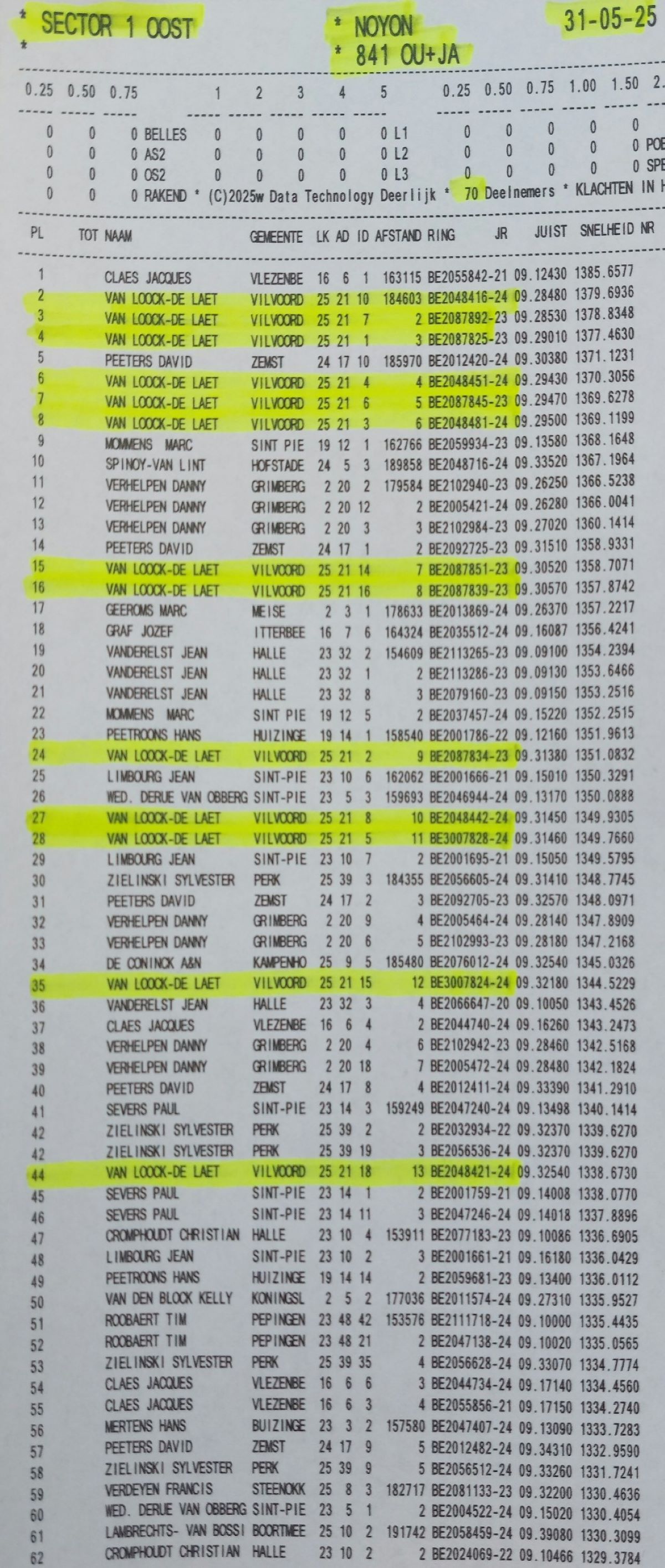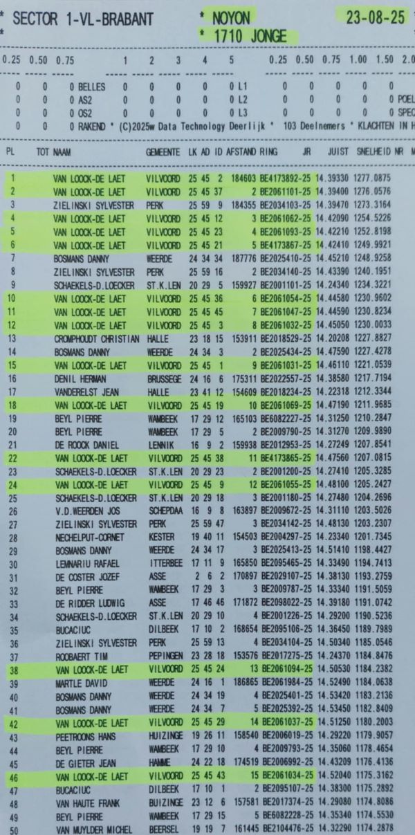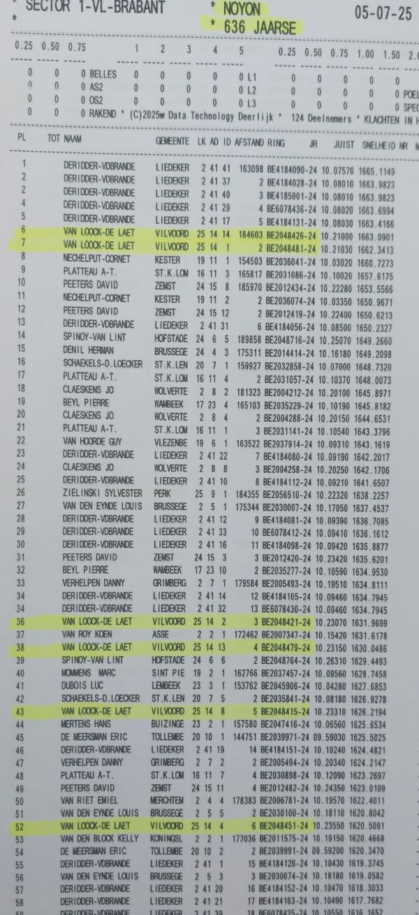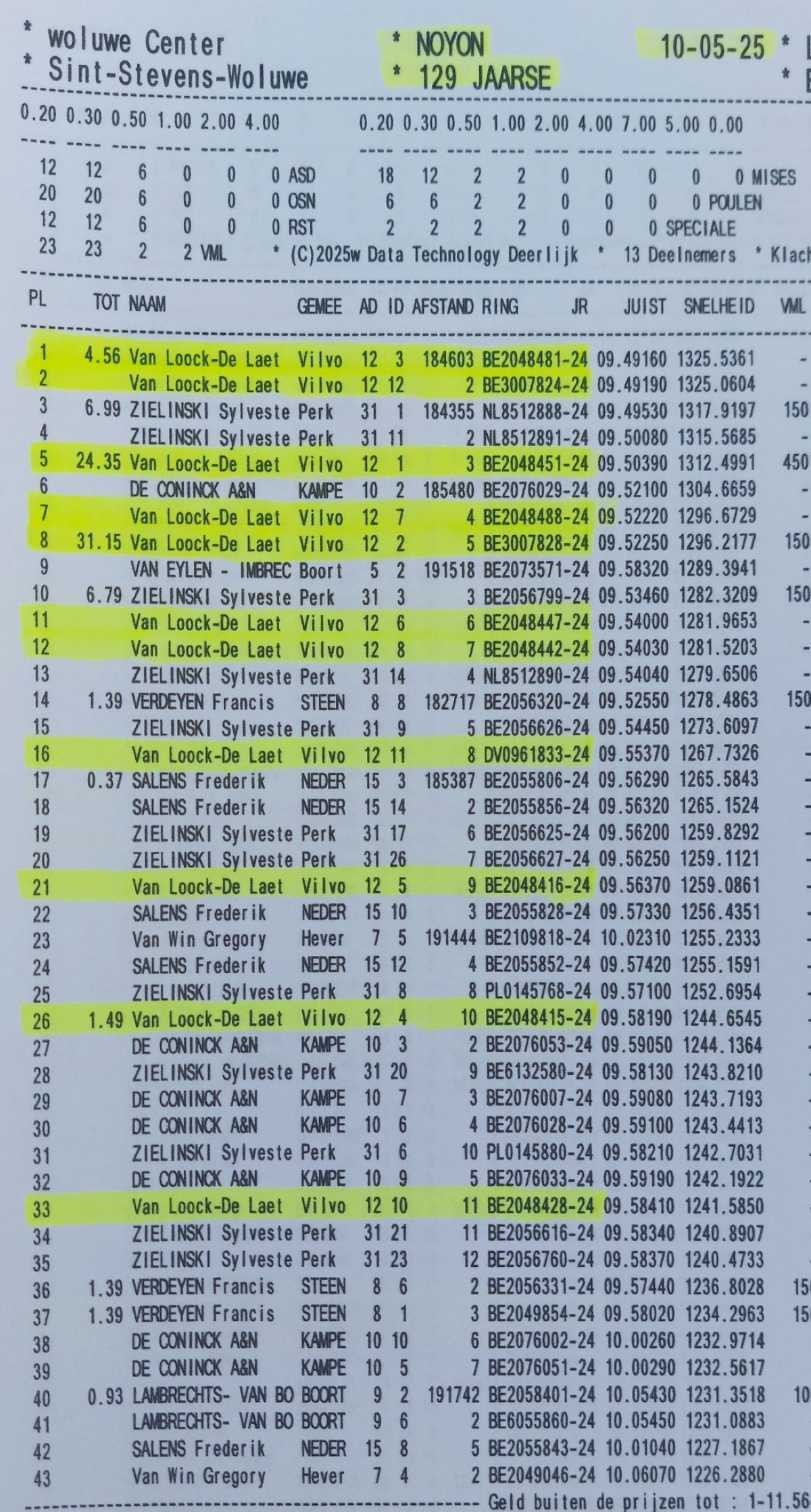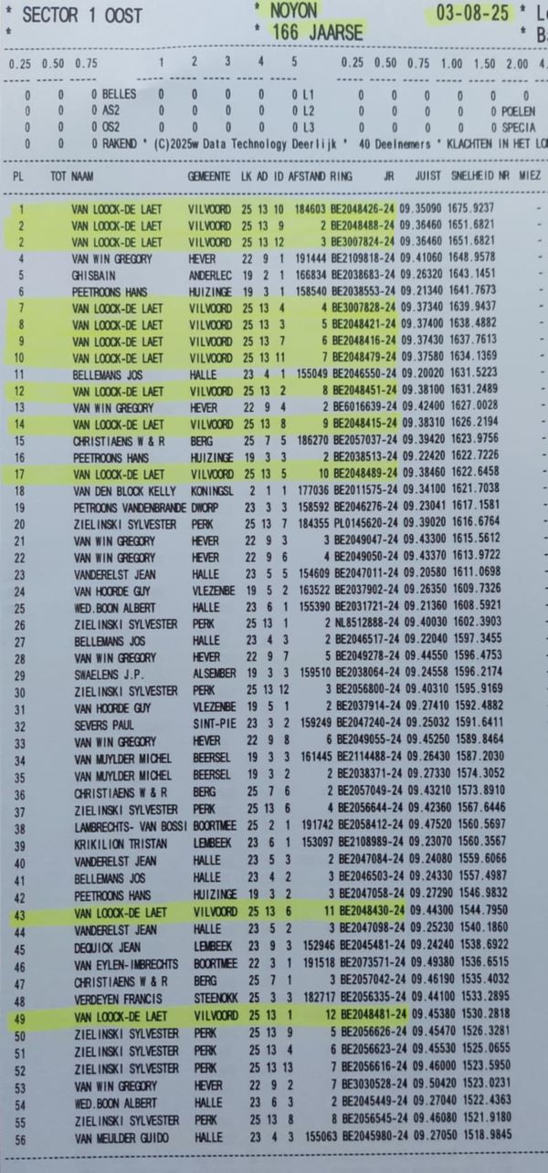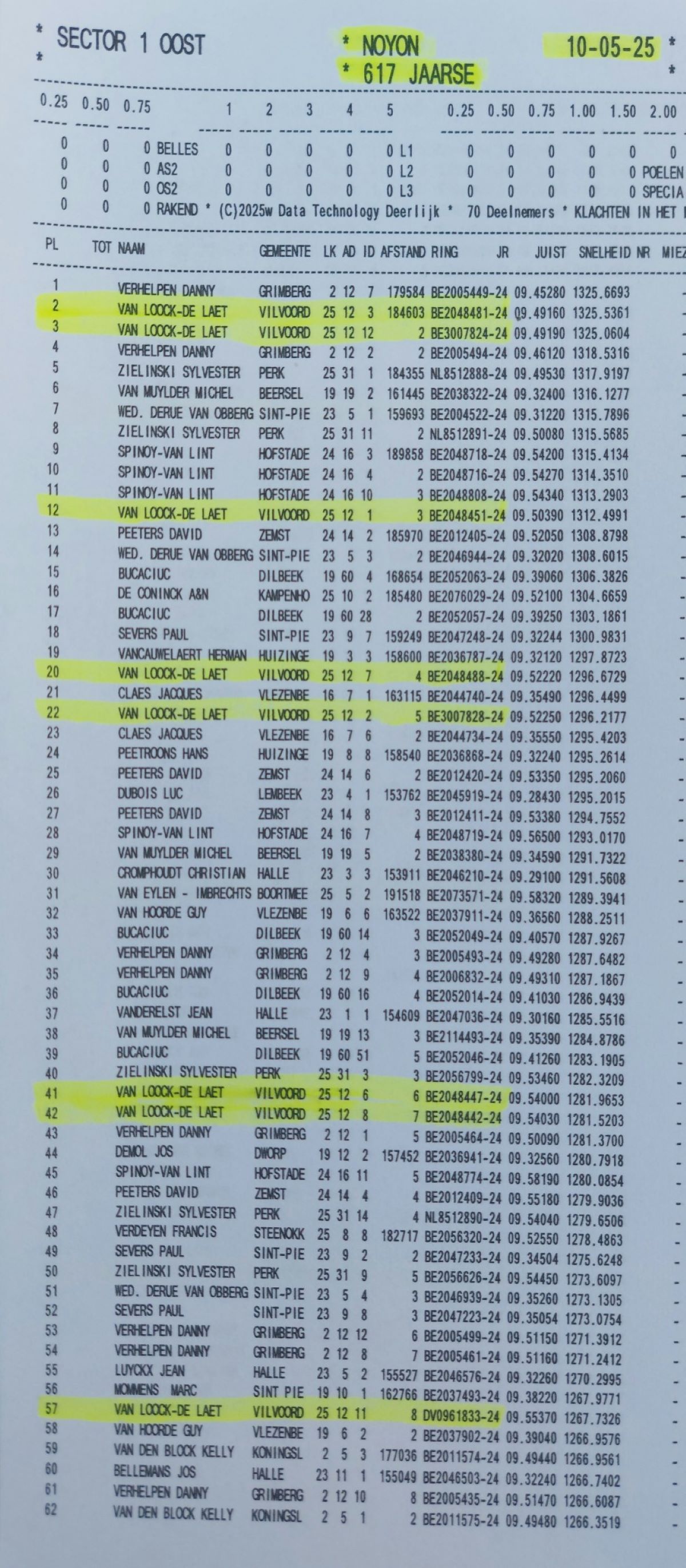 Een mooi resultaat voor Maurice Van Loock & Juan De Laet uit Houthem - Vilvoorde (Vlaams-Brabant).