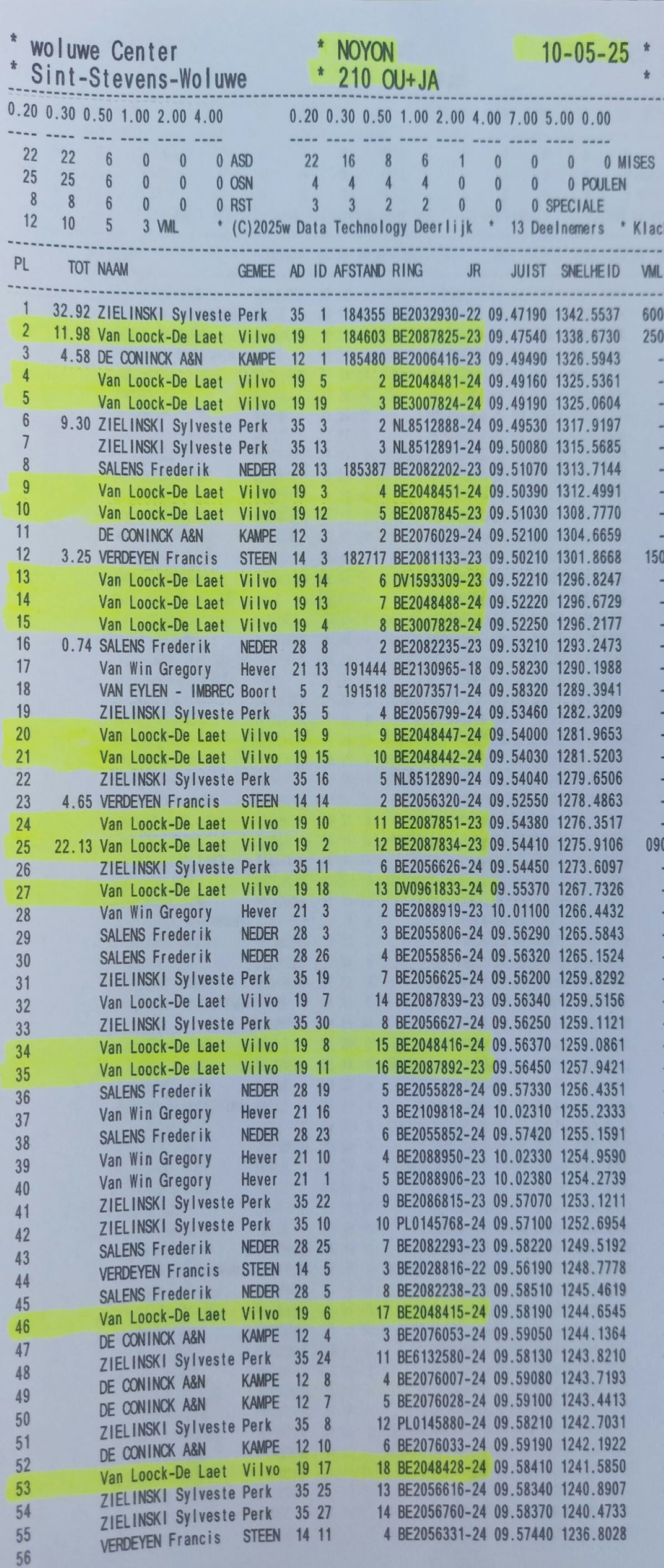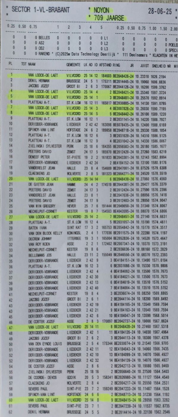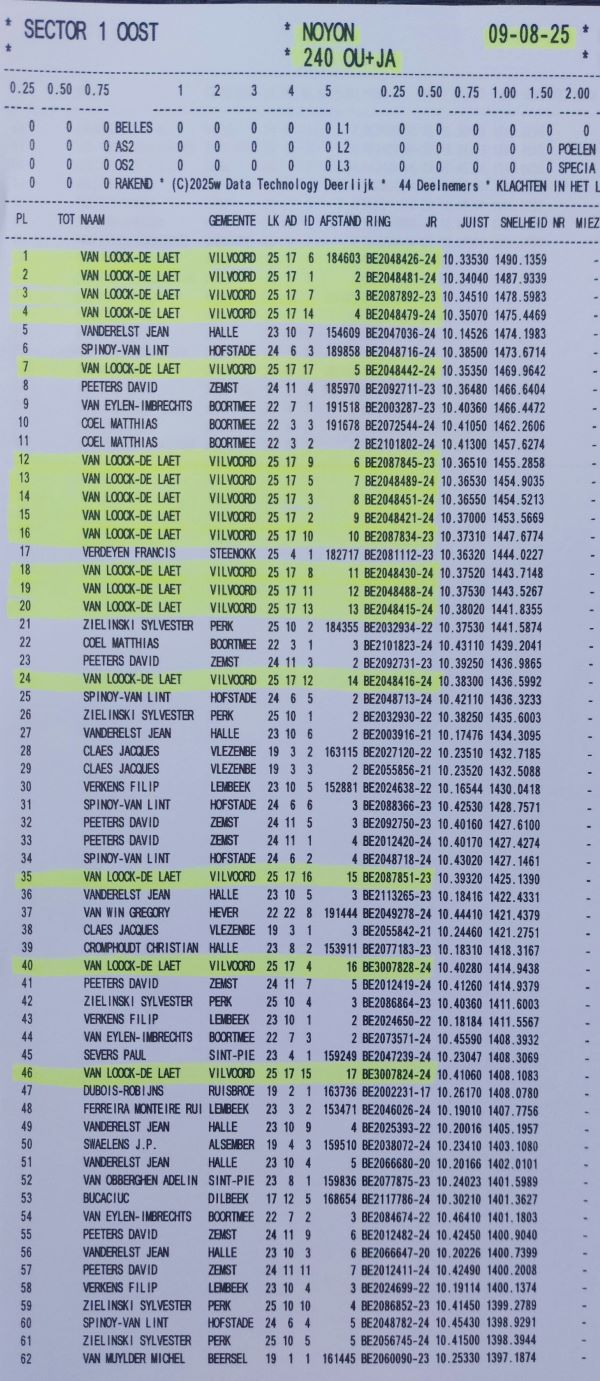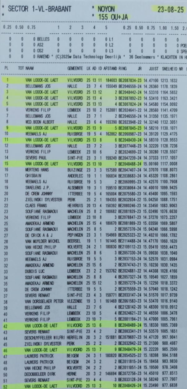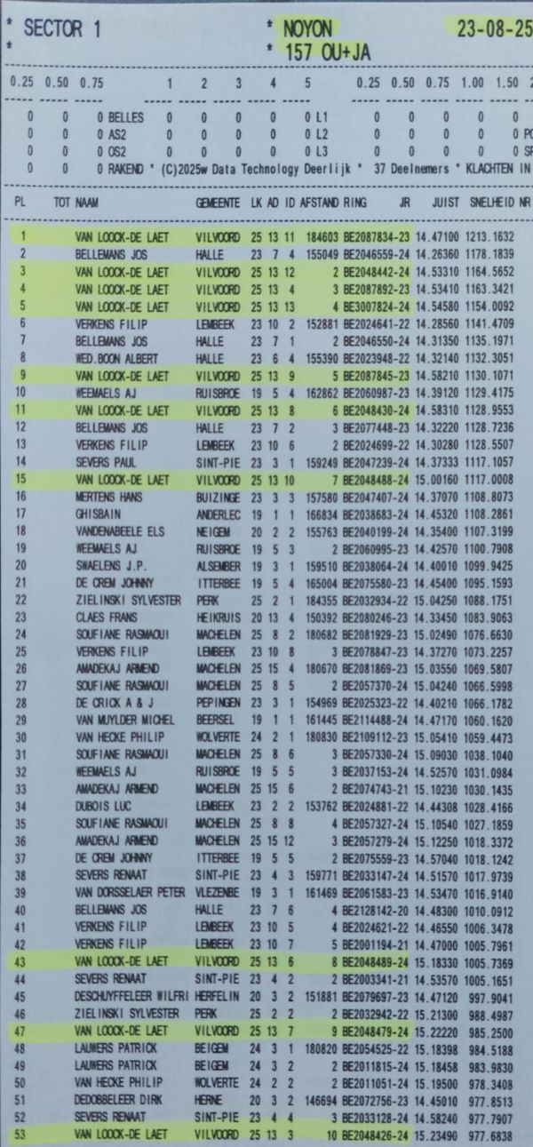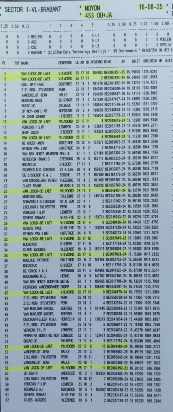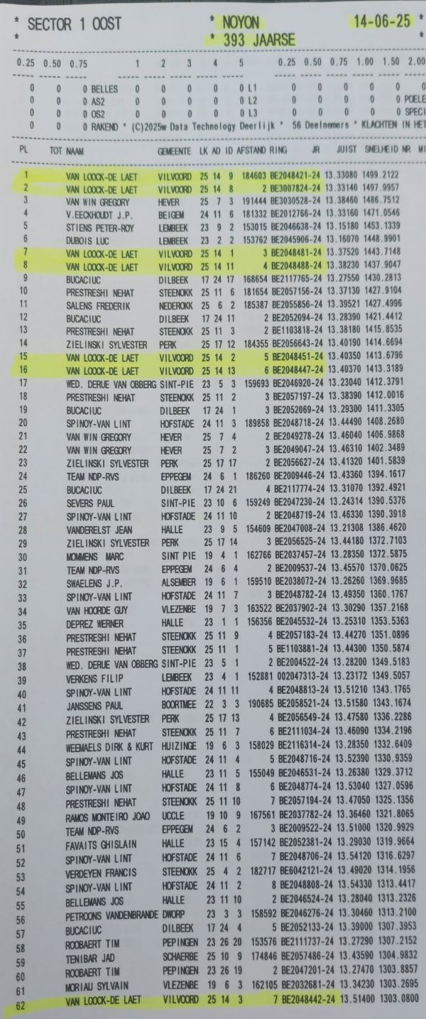 Een mooi resultaat voor Maurice Van Loock & Juan De Laet uit Houthem - Vilvoorde (Vlaams-Brabant).