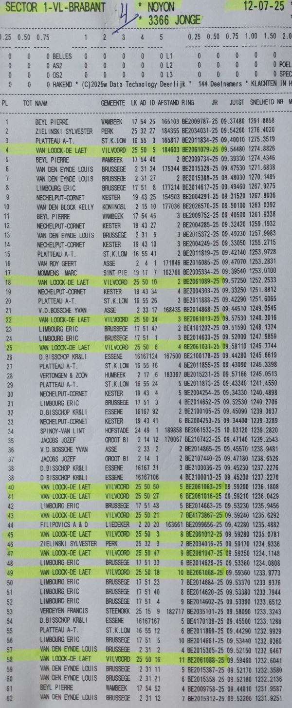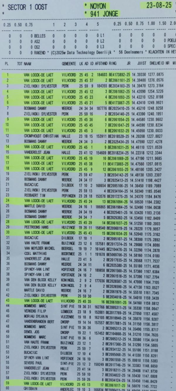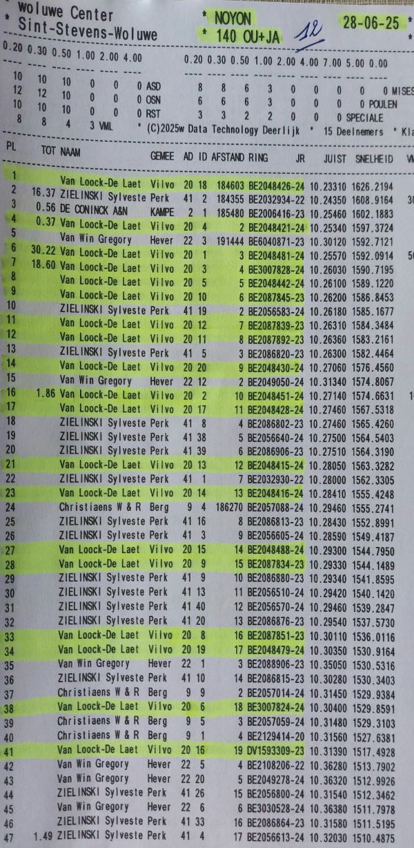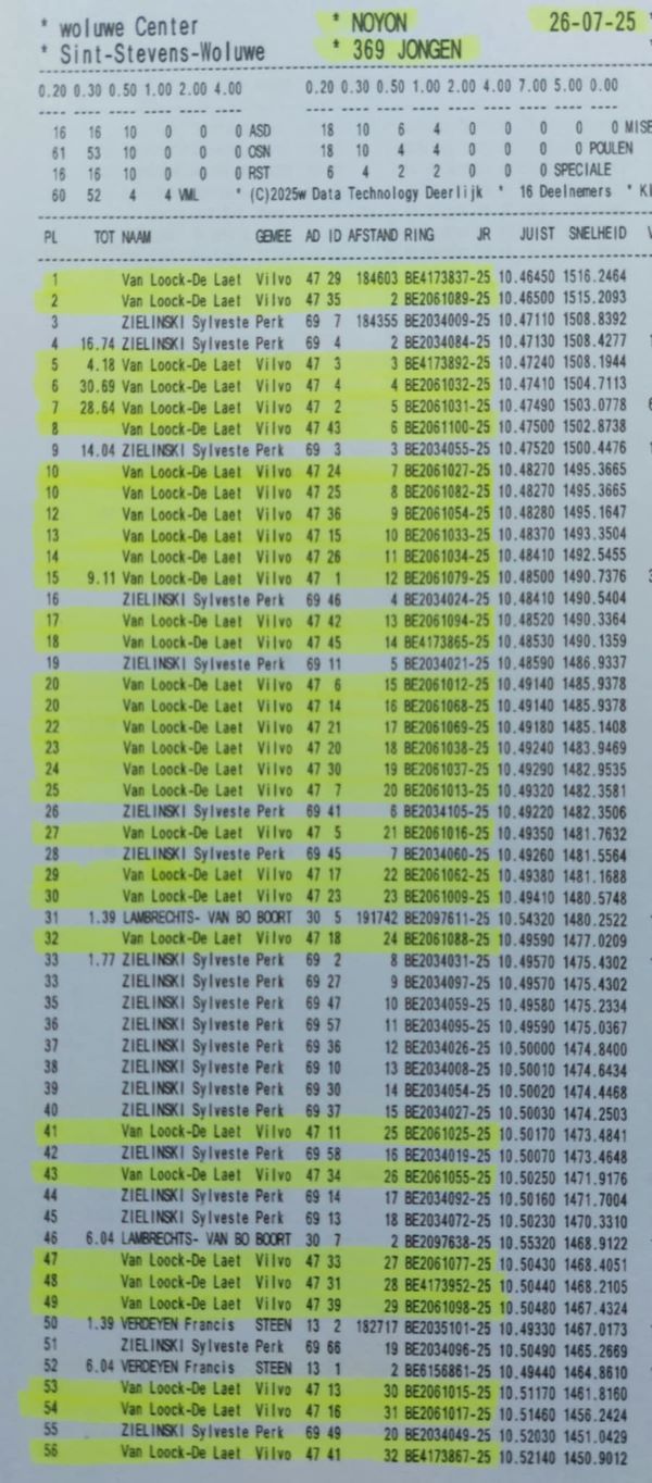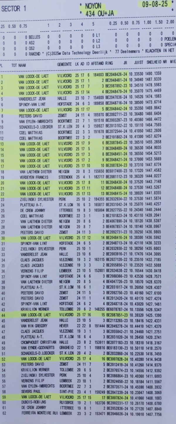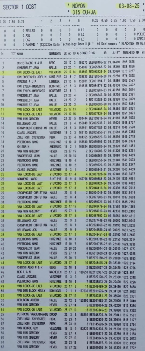 Een mooi resultaat voor Maurice Van Loock & Juan De Laet uit Houthem - Vilvoorde (Vlaams-Brabant).