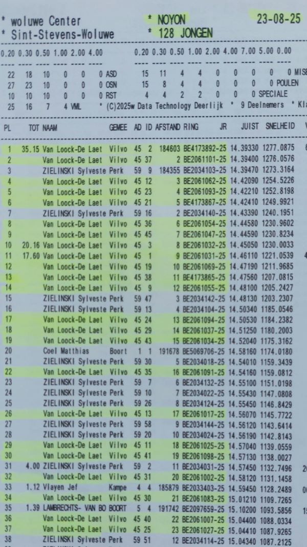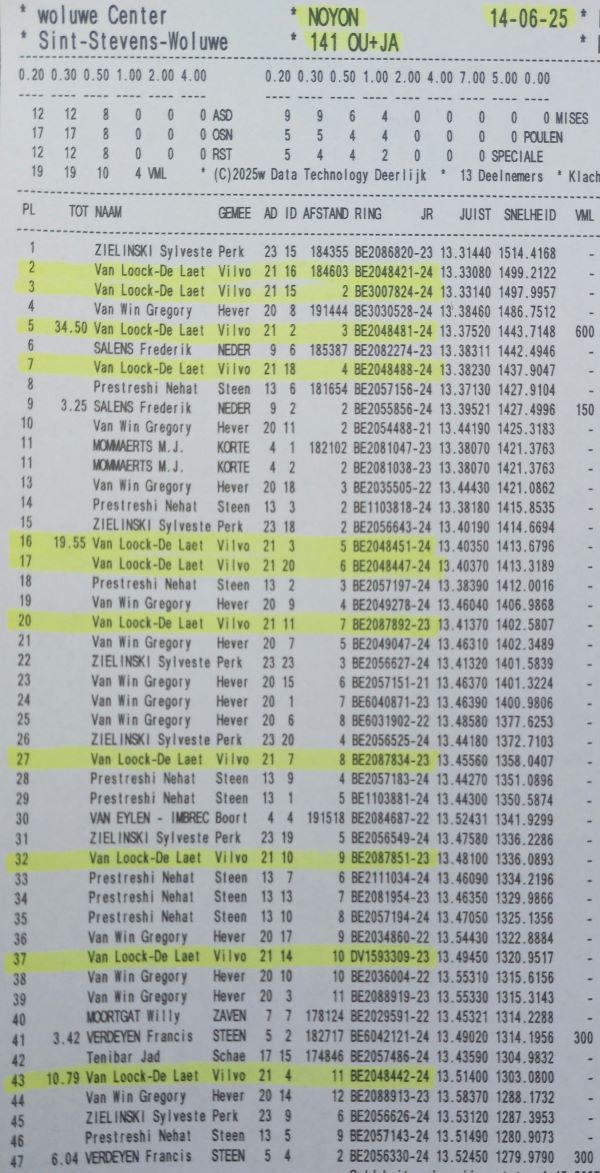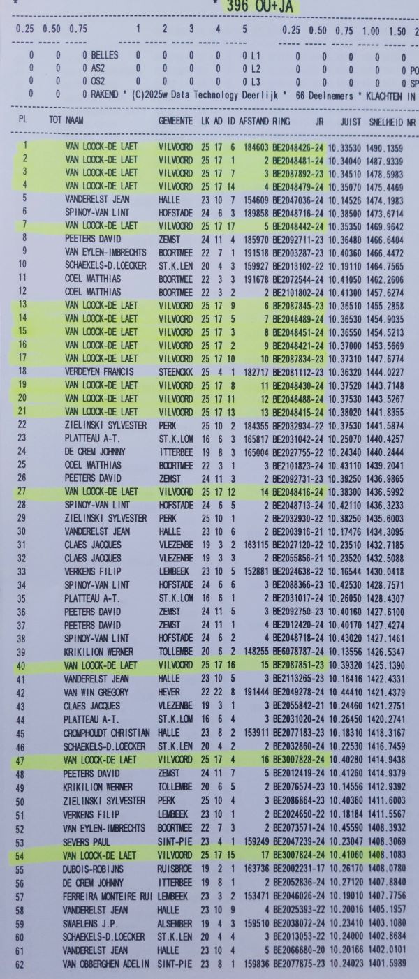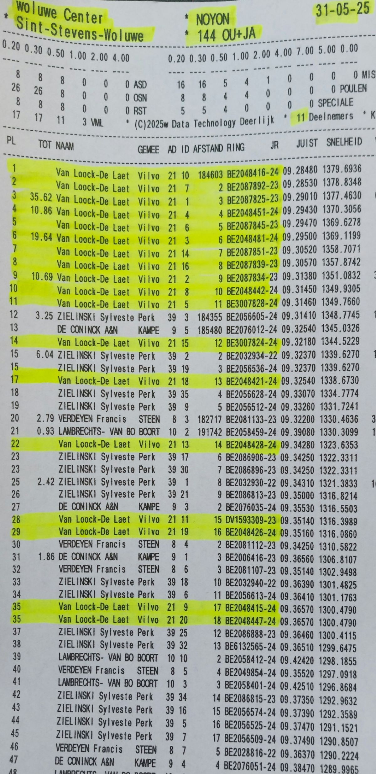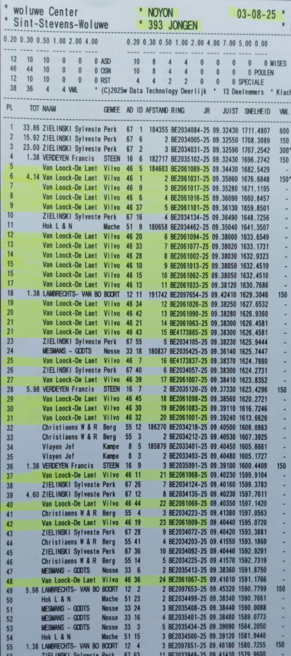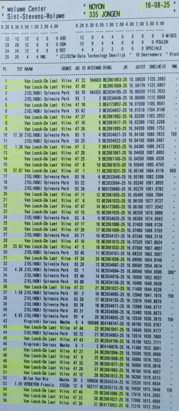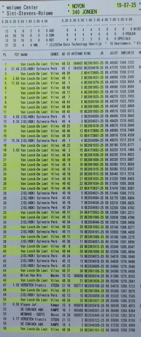 Een mooi resultaat voor Maurice Van Loock & Juan De Laet uit Houthem - Vilvoorde (Vlaams-Brabant).