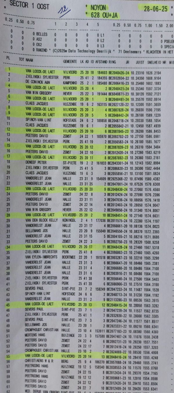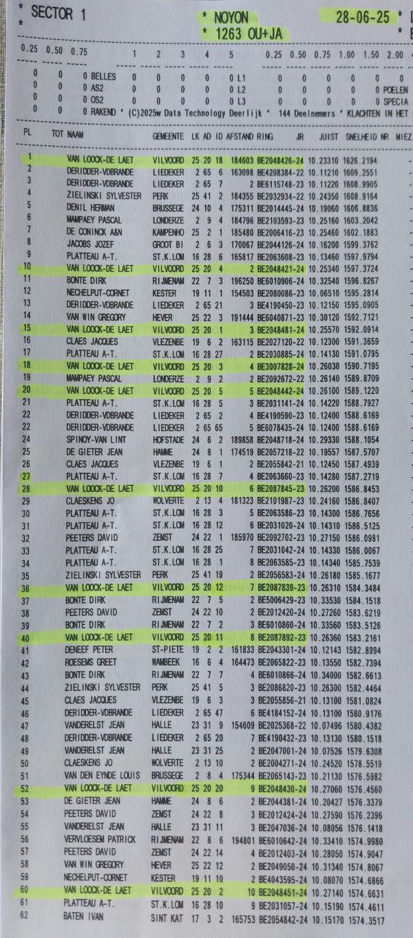 * SECTOR 1 OOST * NOYON 28-07-24 * Los : 06.45 S:0777 ** * 192 JAARSE * Basis: 180000 P: 1 *