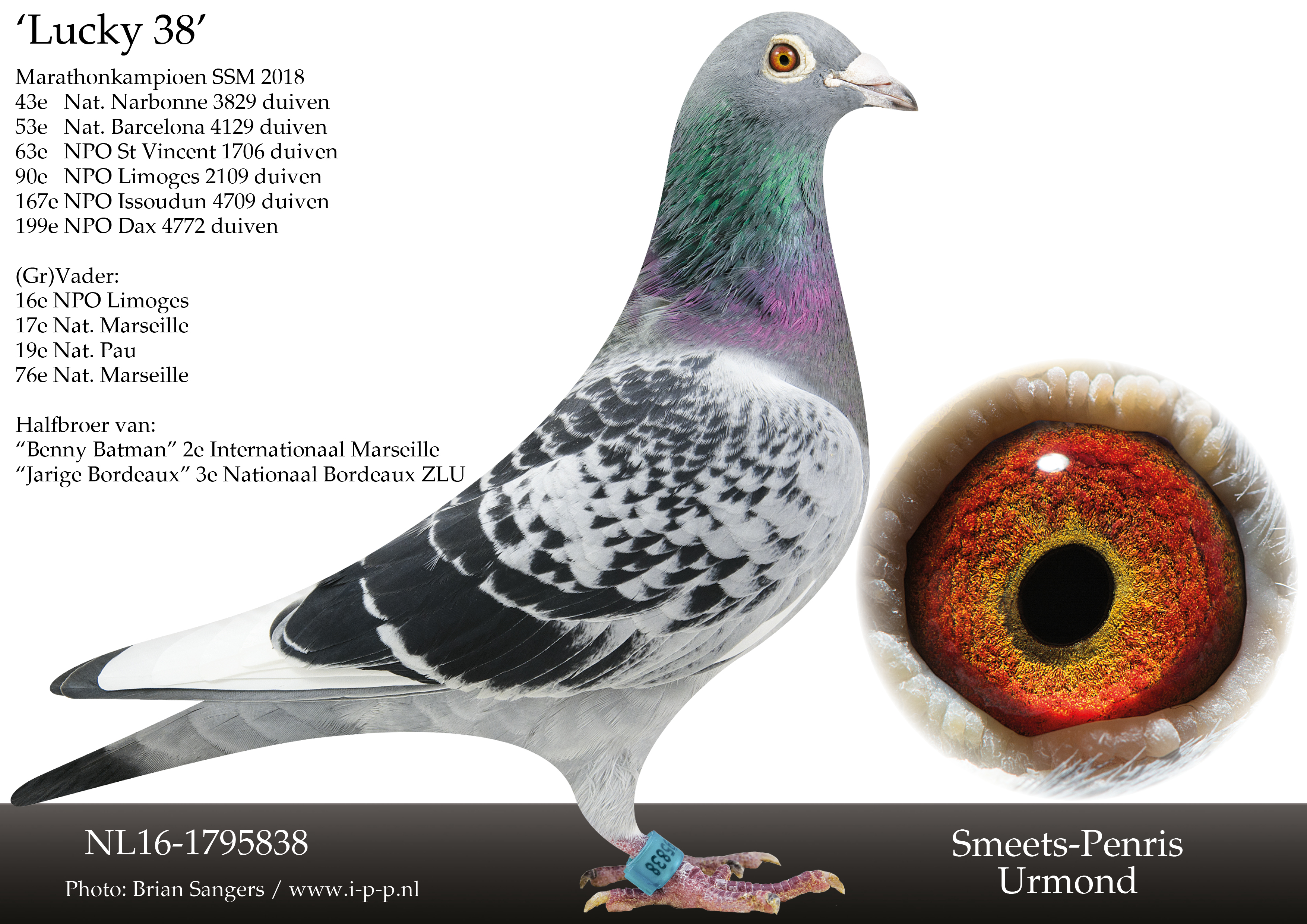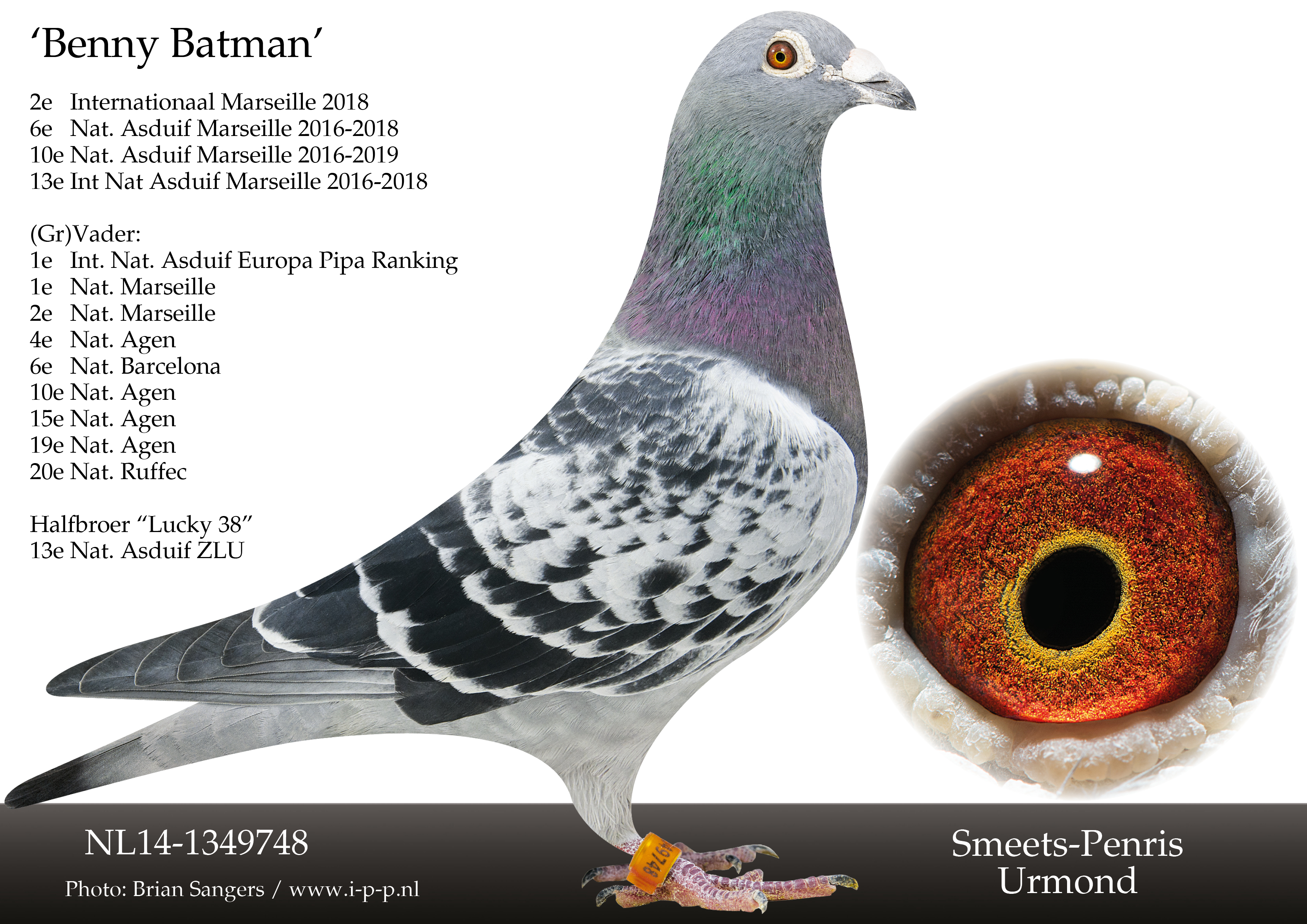 Wij zijn dan ook zeer verheugd voor de eerste keer te kunnen veilen met de Combinatie Smeets-Penris, zij bieden duiven aan uit al die bovenstaande toppers. Dit is een unieke kans voor de fond en zware fondspeler om zich te versterken met het beste wat er op de Nederlandse markt te vinden is.