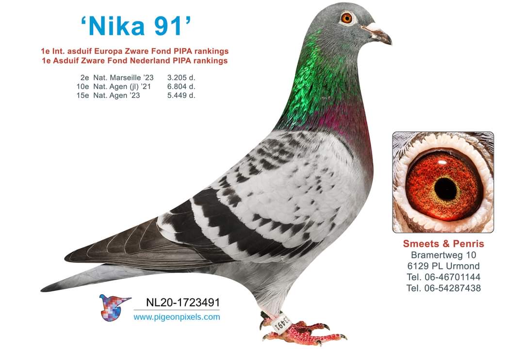 NIKA 91: 1e Internationale Asduif PIPA-rankings zware fond! Vloog 3x top-15 Nationaal, UNIEK!!