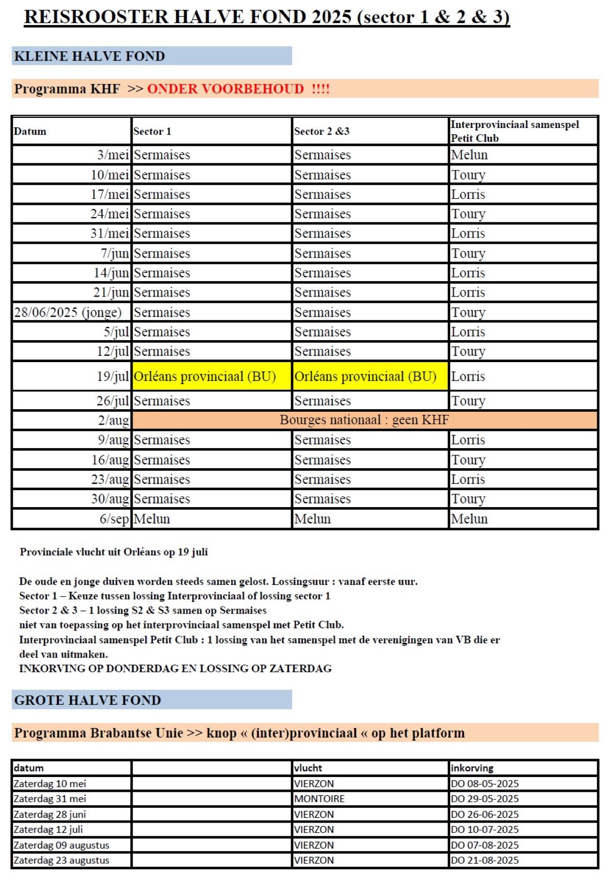 De kalender zal nog wijzigen voor de KHF zodra we van Frankrijk de lossingsplaatsen krijgen die gebruikt kunnen worden in 2025.