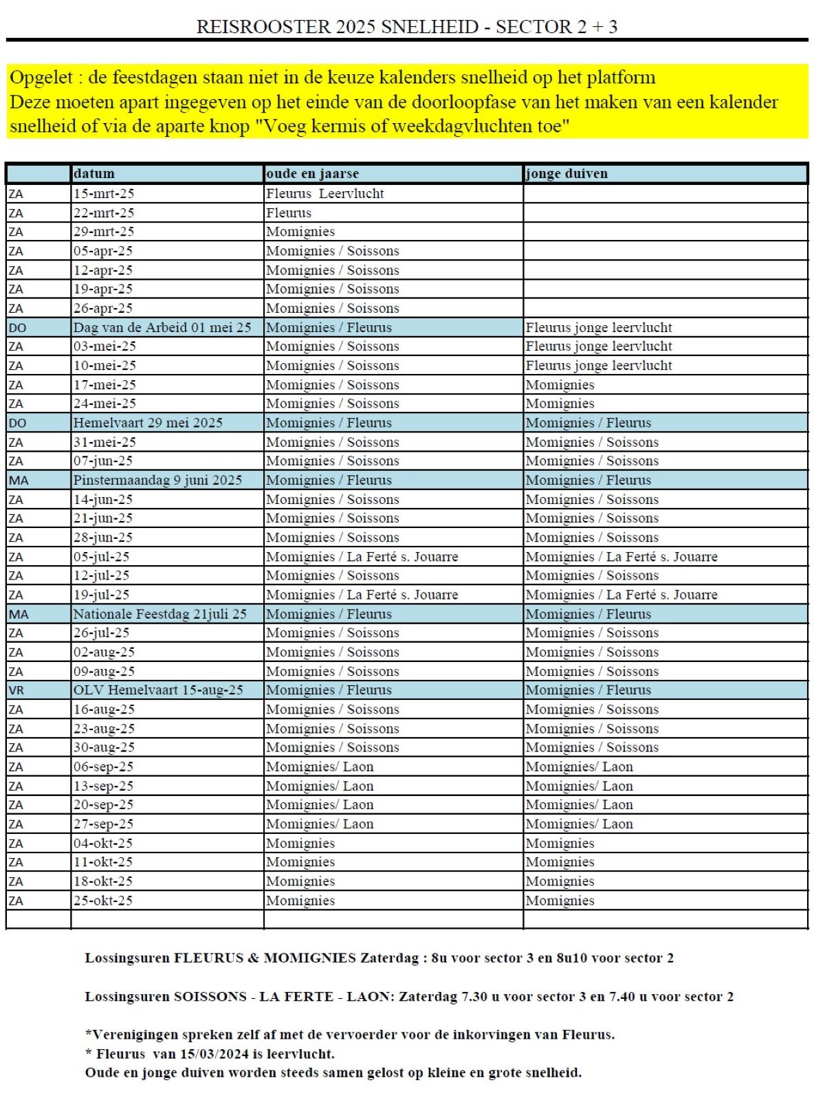 - Snelheid Sector 2 & 3 vluchtprogramma 2025