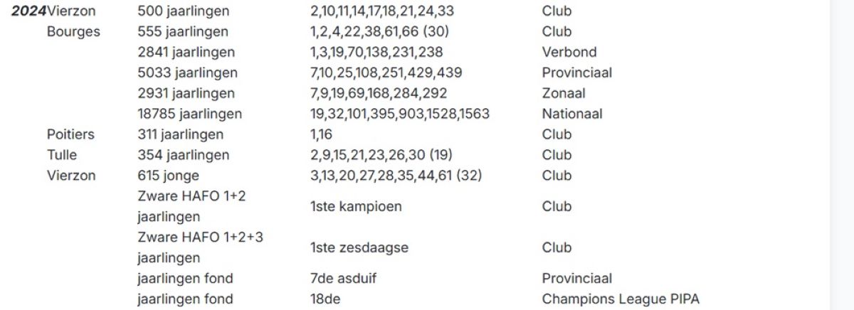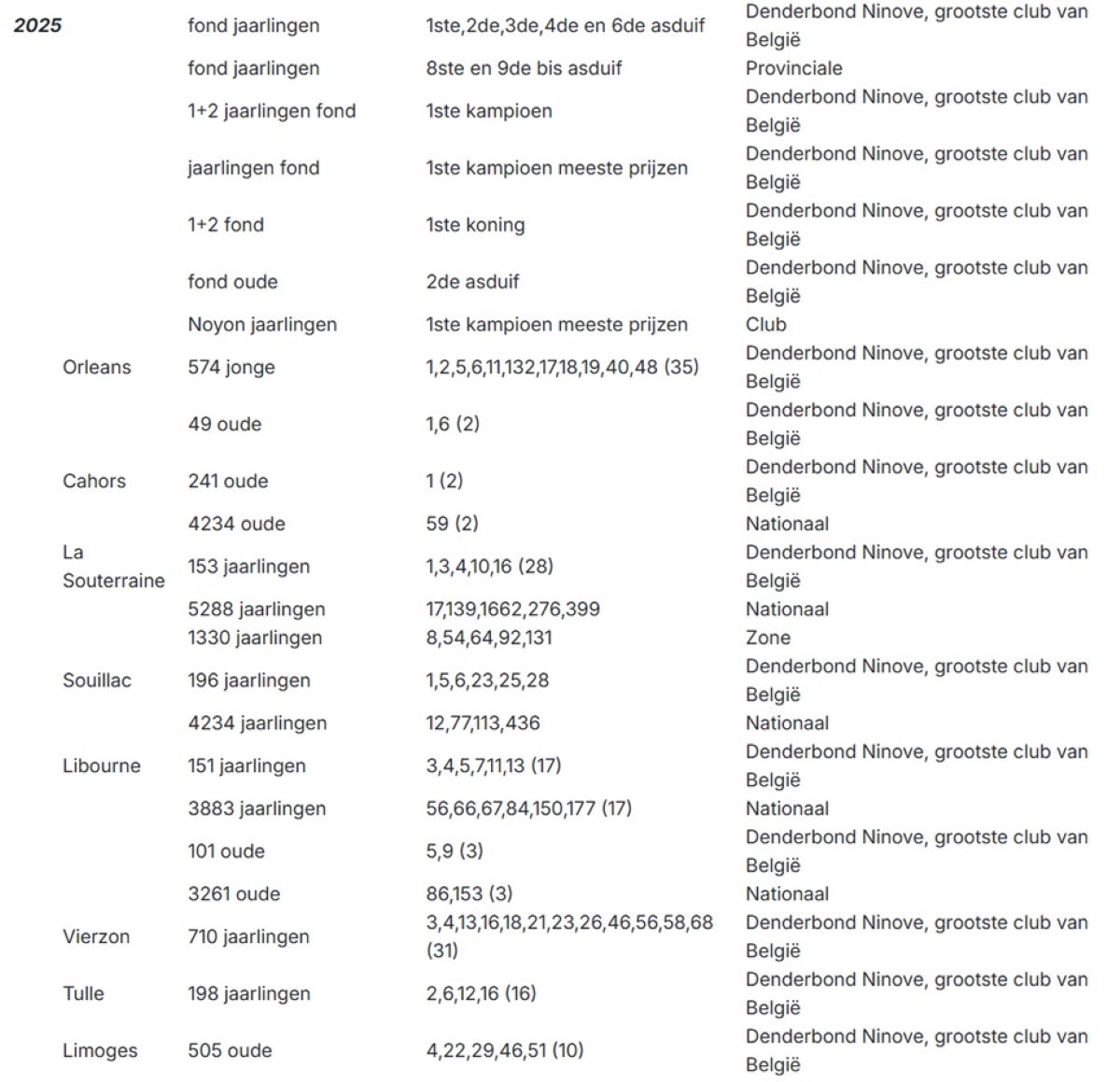 1e KAMPIOEN JAARSE DUIVEN MEESTE PRIJZEN NOYON 2025 CLUB