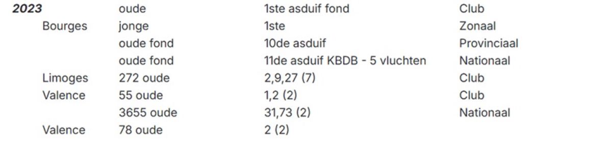 1-2-3-4-6e ASDUIF JAARSE DUIVEN FOND 2025 DENDERBOND NINOVE (grootste club van België)