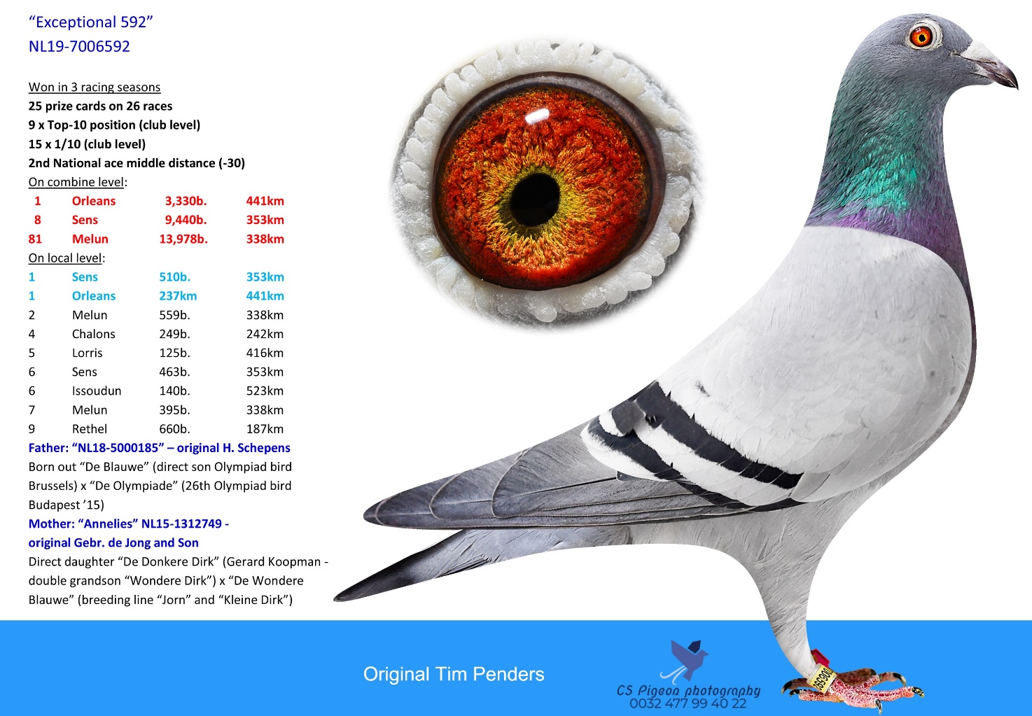 Dat de jeugd het lang niet slecht doet in de duivensport, hebben we al meermaals moeten toegeven. Ook de amper 31-jarige Tim Penders heeft op bijzonder korte tijd al meermaals van zich laten horen. Pitts ging enkele jaren geleden op zoek naar het geheim achter deze Nederlandse topper die reeds 3 Nationale sector-overwinningen op zijn palmares mocht noteren en brengt exclusief een aantal duiven in veiling die uit het hartje van deze kampioenenkolonie voortkomen. Een beperkt aanbod, maar duidelijk van de allerhoogste kwaliteit!