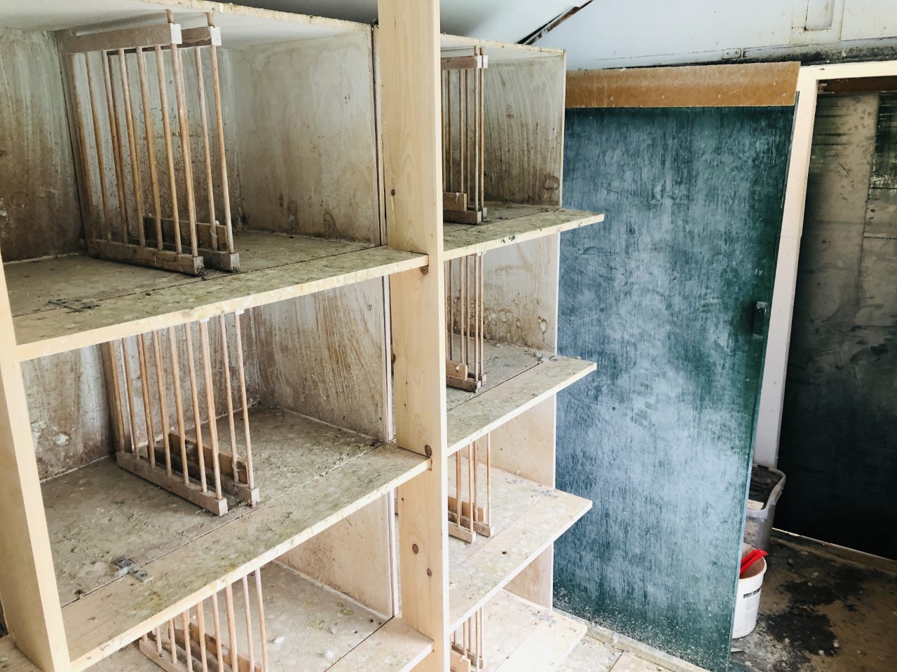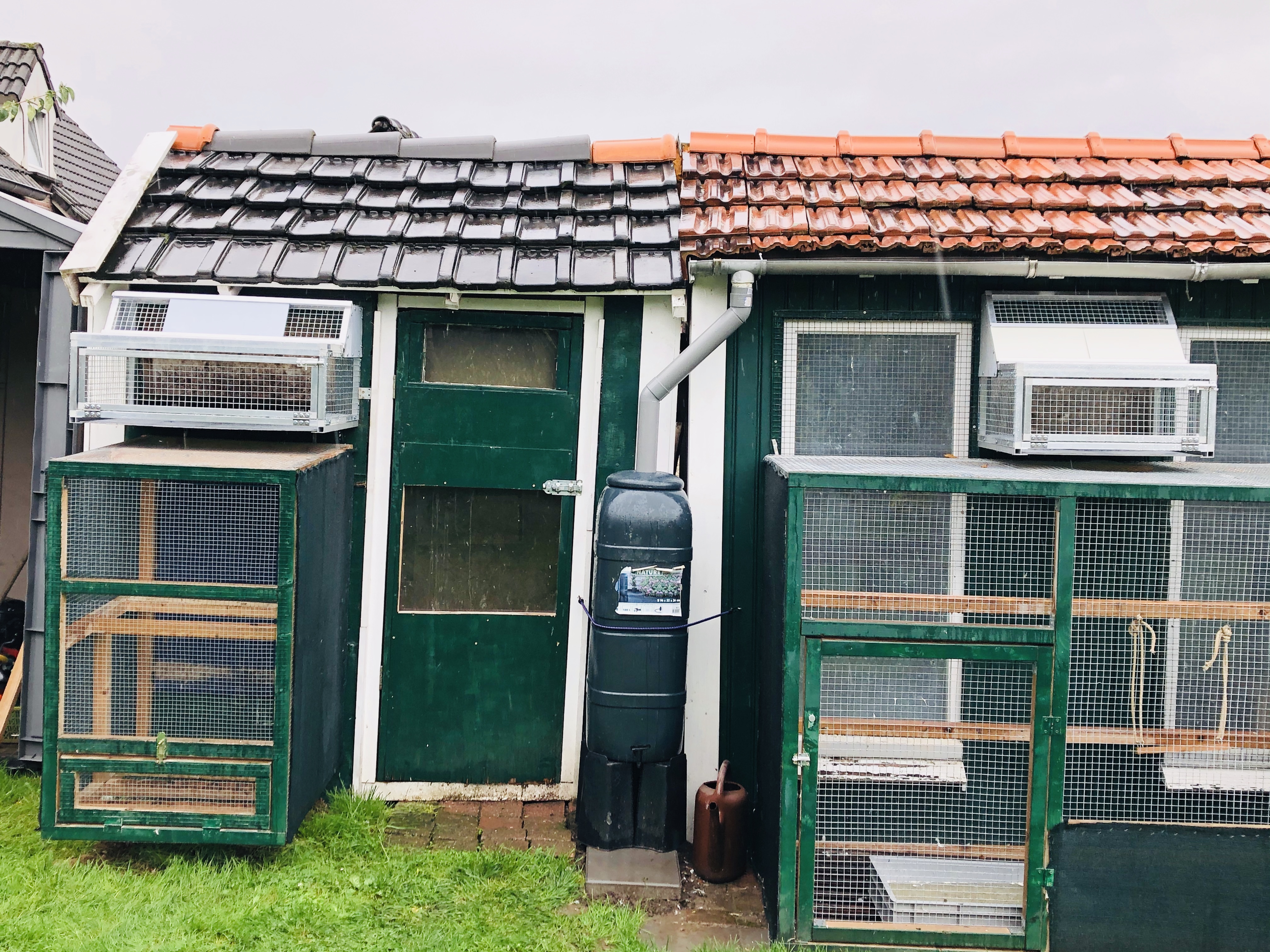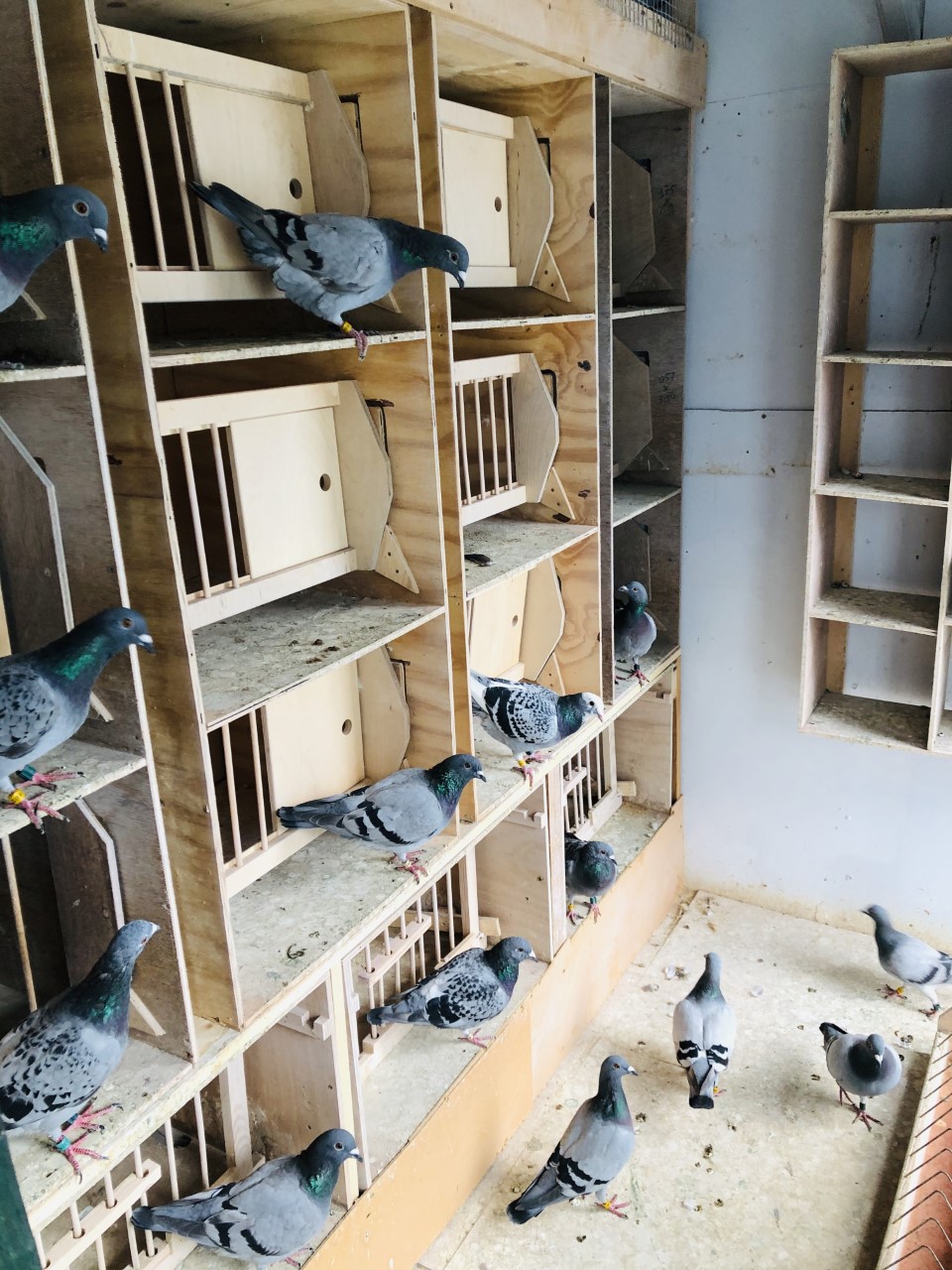 Voor Tim Penders (31) begon het allemaal toen een vreemde reisduif aankwam bij zijn witte sierduiven die hij als tiener hield op een klein hokje op het terras. De duif werd aangemeld bij eigenaar P. Thissen en uit dank voor het aanmelden kreeg Tim meteen 20 duiven mee naar huis om te starten. Er was op dat moment nog niet eens een hok om de duiven in te steken, maar daar vond Tim snel iets op: in de schuur in de tuin had hij een eigen cafeetje gemaakt waar hij aanvankelijk in het weekend feestjes hield voor vrienden. Op een paar dagen tijd werd deze ruimte omgetoverd tot een duivenhok waar tot op vandaag nog steeds de kweekduiven zitten. Tim: “In de zomer van 2016 wilde ik graag een echt duivenhok aanschaffen en dus ben ik er op internet één gaan zoeken. Helaas stonden er in onze buurt geen duivenhokken te koop, wel hokken voor andere dieren waaronder een kanariehok. Aan het hok was erg veel werk en tijdens het afbreken en vervoeren was er veel kapot gegaan. Met veel hulp van mijn vader en vrienden heb ik hier een fantastisch hok van kunnen maken. Op internet heb ik verschillende hokken bekeken en van daaruit de inrichting van het hok zelf gemaakt. Mark Renneberg, een oude kennis van mijn vader, is naar mijn hok komen kijken en heeft mij ook een aantal goede tips gegeven.” Het hok werd na verloop van tijd nog verder uitgebreid en biedt nu plaats aan 15 vliegduivinnen en verder nog 2 afdelingen voor jonge duiven.