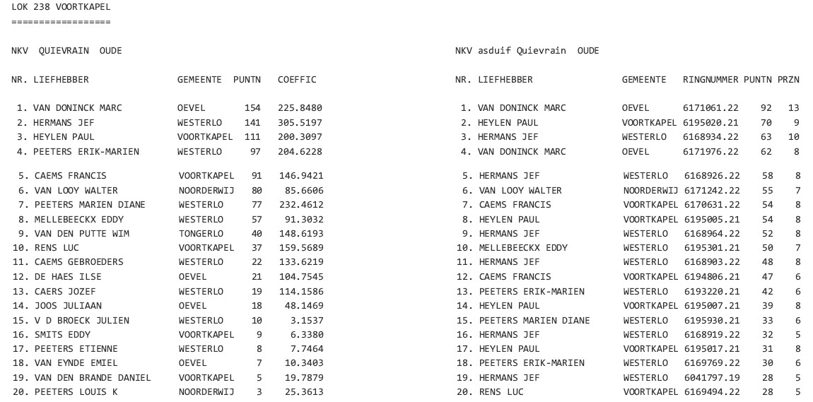 Klik hier voor Traag maar Zeker VOORTKAPEL Kampioenschappen 2024 Quievrain Oude