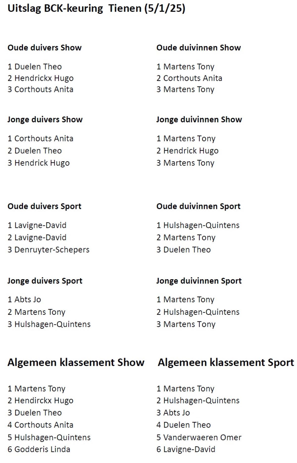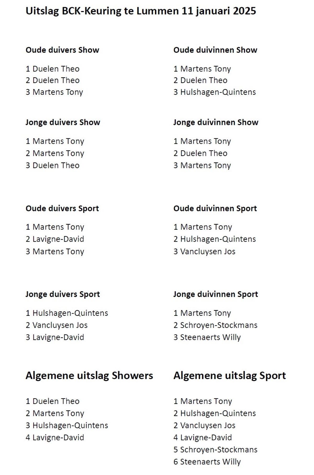 Uitslag BCK-Keuring te Kortrijk (Fugare) 15 Februari 25 - Uitslag BCK-keuring Vottem 26-01-25 - Uitslag BCK-keuring te Lummen op 11-1-25- Uitslag BCK-keuring te Tienen op 05-01-2025 - Uitslag BCK-keuring te Lede 14-12-2024
