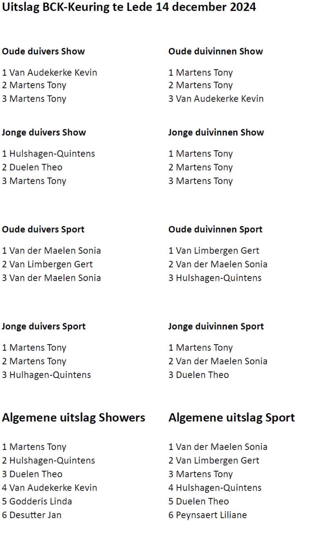 Uitslag BCK-keuring te Lede 14-12-2024