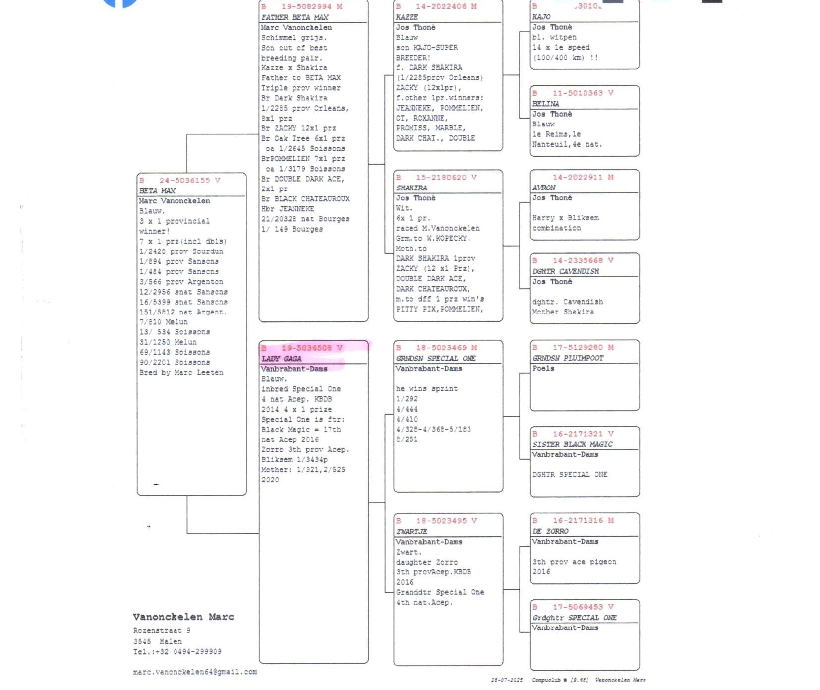 Patrick Welkenhuyzen (Koersel) doet het ook goed met afstammelingen van Vanbrabant-Dams, steeds mooi als mensen in de buurt ook slagen met jouw duiven.