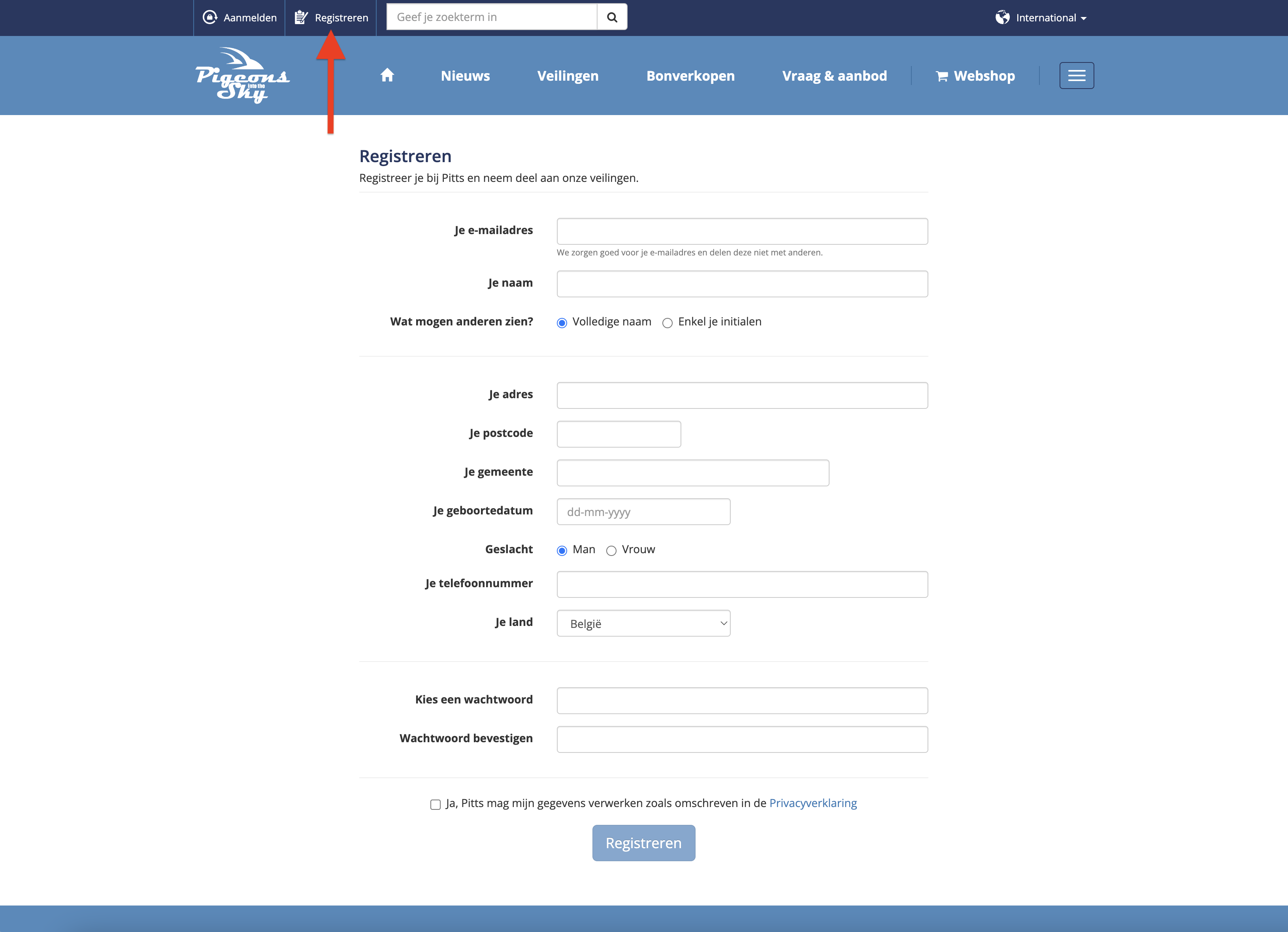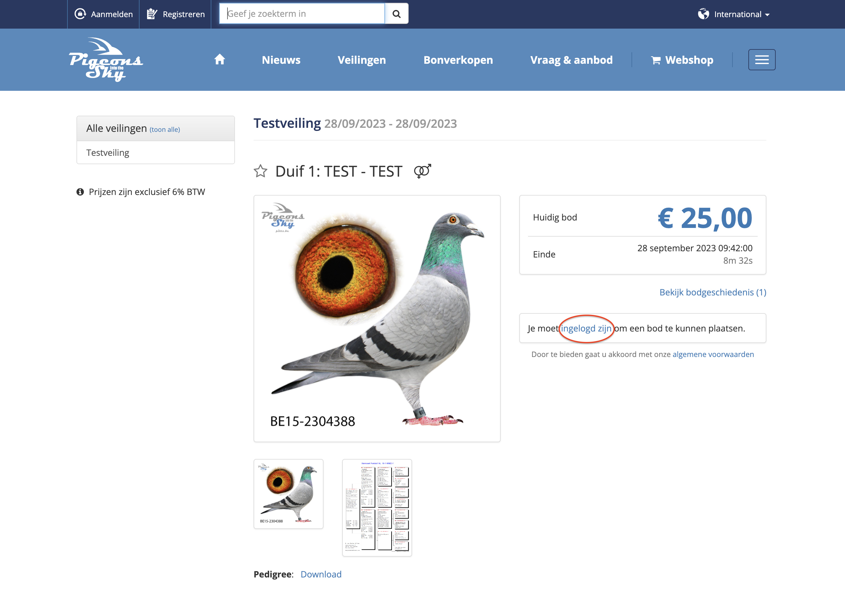 Nieuw dit jaar is dat om te kunnen bieden, u steeds ingelogd moet zijn. Om uzelf te kunnen inloggen dient u zich eerst te registreren op onze site.
