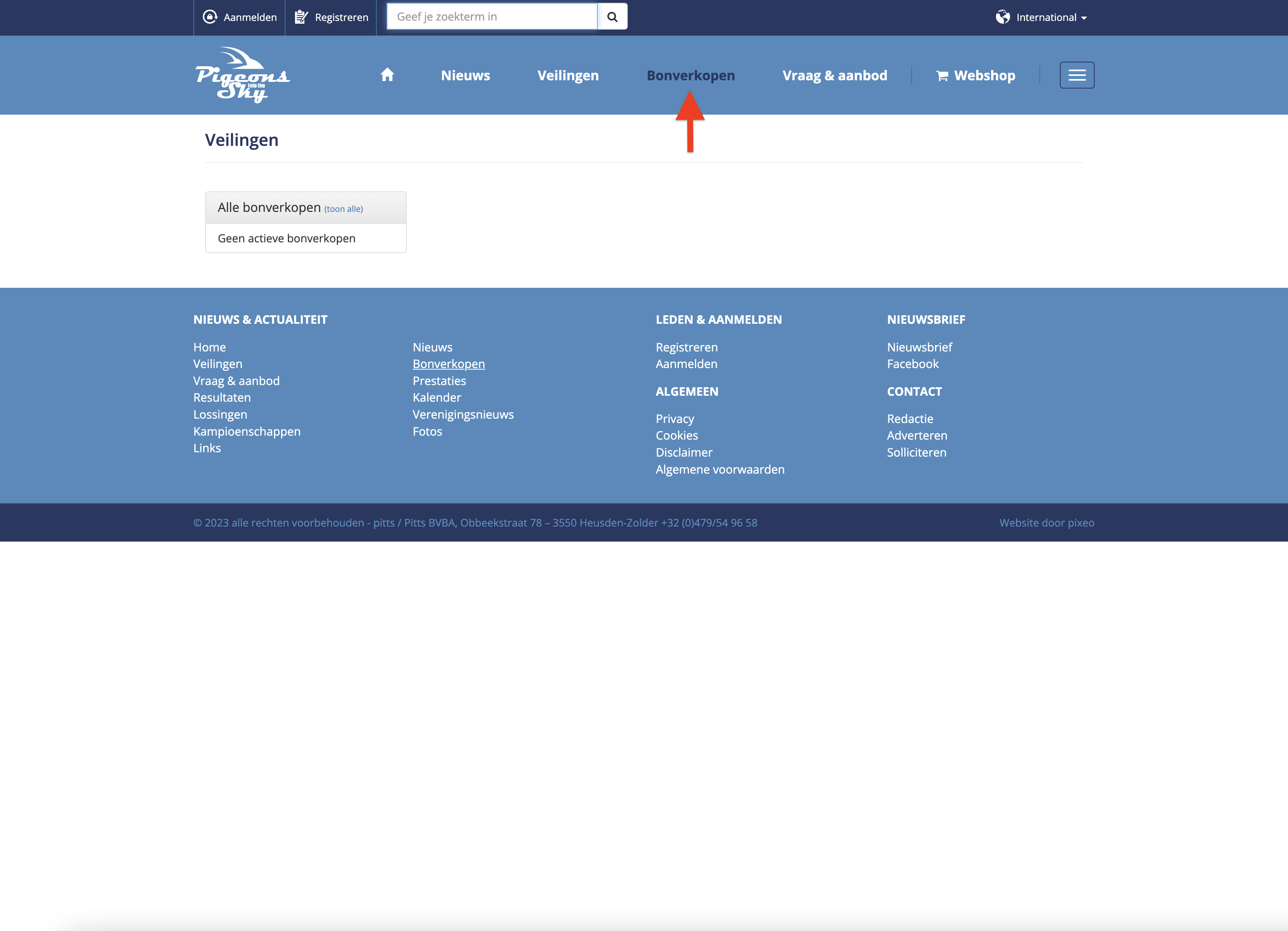 De veilingen en bonverkopen hebben vanaf nu elk een apart pagina die gemakkelijk terug te vinden zijn bij de navigatieknoppen bovenaan.