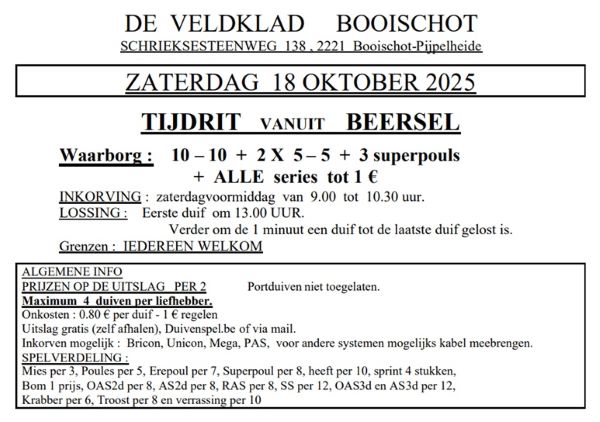 ZATERDAG 18 OKTOBER 2025 TIJDRIT VANUIT BEERSEL