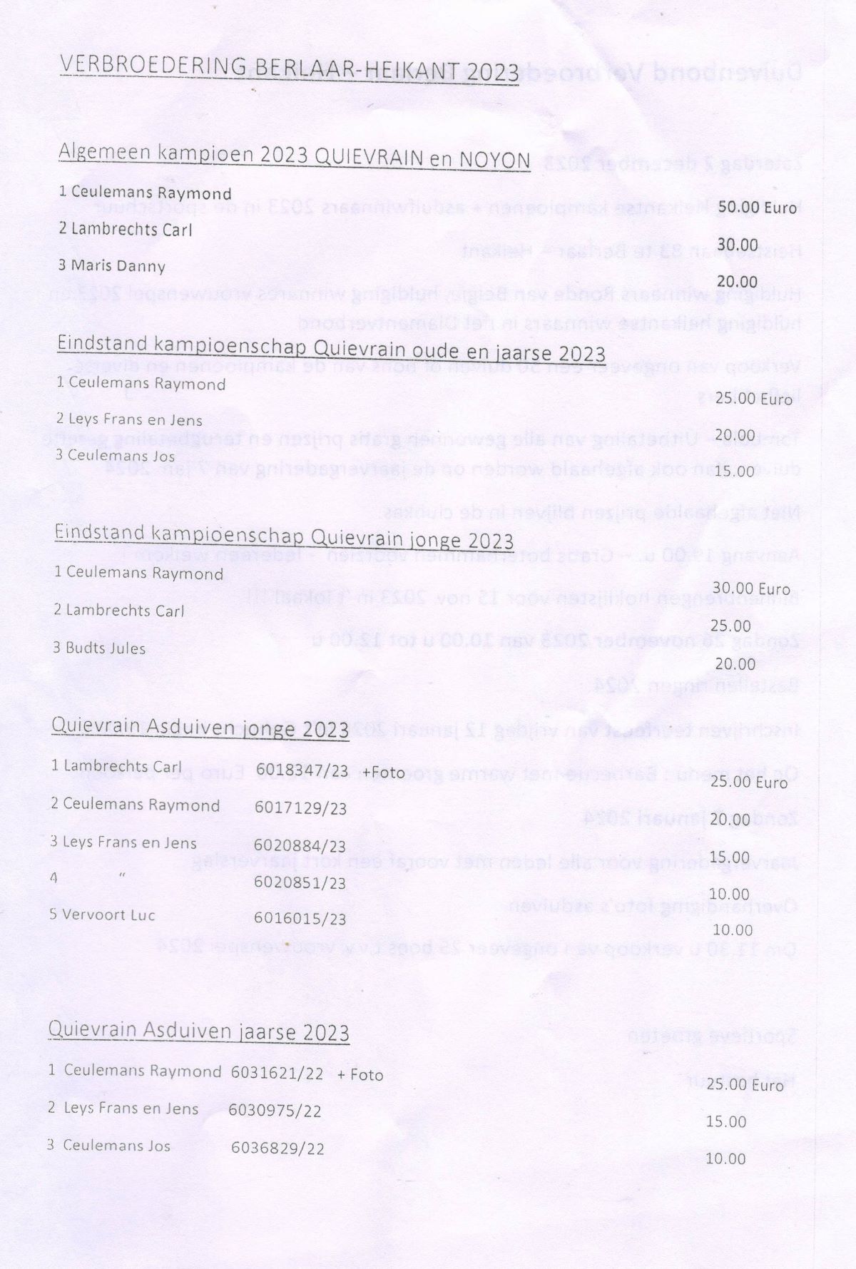 Verbroedering Berlaar Heikant Kampioenschappen 2023