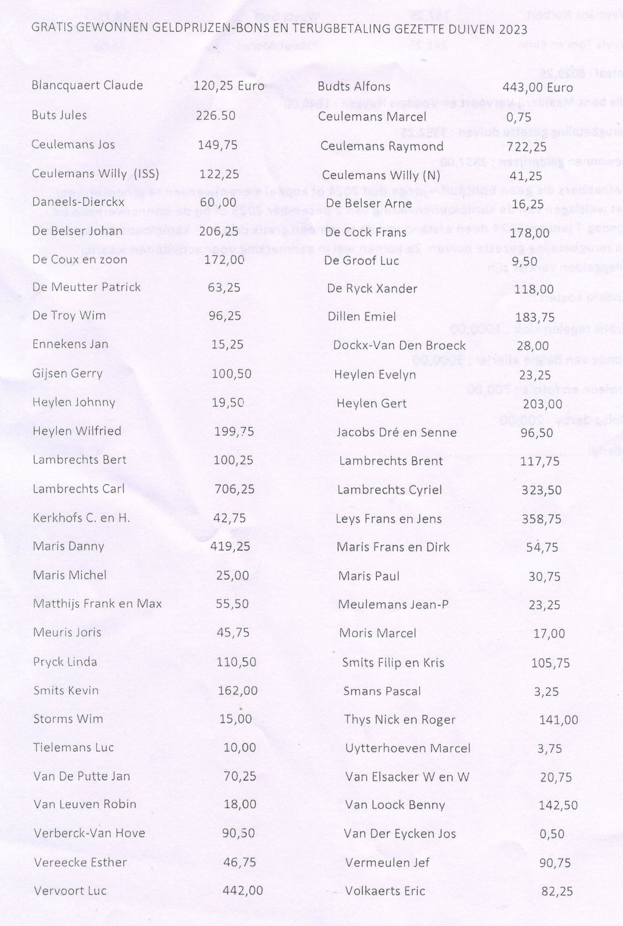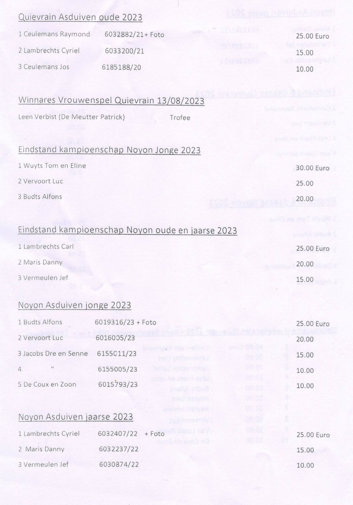 Asduif Jaarse duiven Noyon: Cyriel Lambrechts