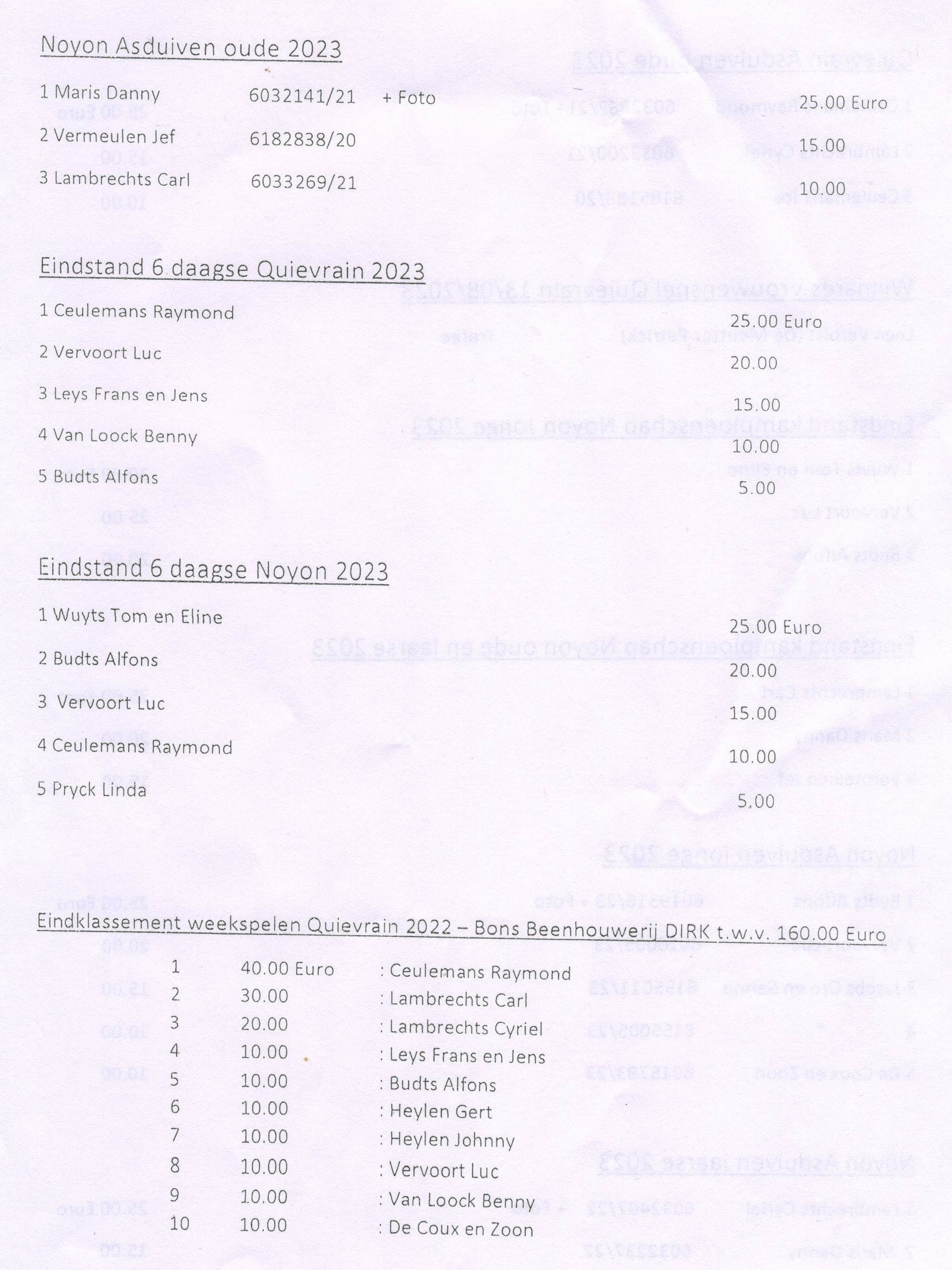 Asduif Jaarse duiven Noyon: Cyriel Lambrechts