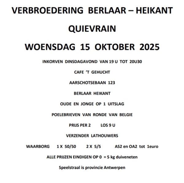 QUIEVRAIN WOENSDAG 15 OKTOBER 2025