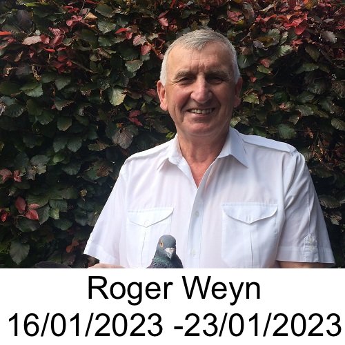 Door problemen met de gezondheid van Roger, zijn vader en zoon Weyn nu genoodzaakt om op doktersadvies de duiven van de hand te doen, met pijn in het hart. Stammoeder 4273230/2008 zal omwille van haar gezegende leeftijd niet meer verhuisd worden en komt dus ook niet in veiling.