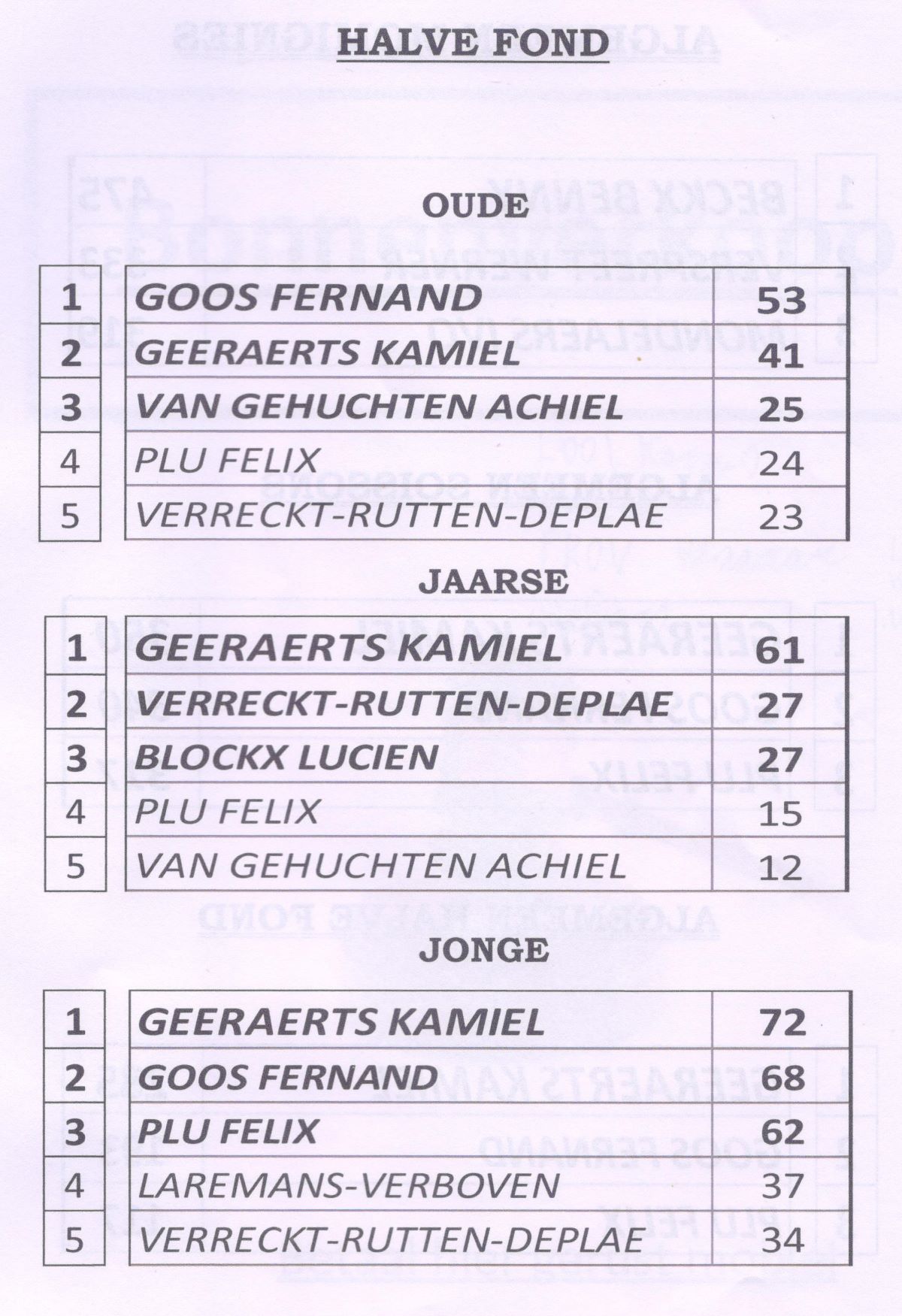 Asduif Jaarse duiven Halve Fond: Kamiel Geeraerts