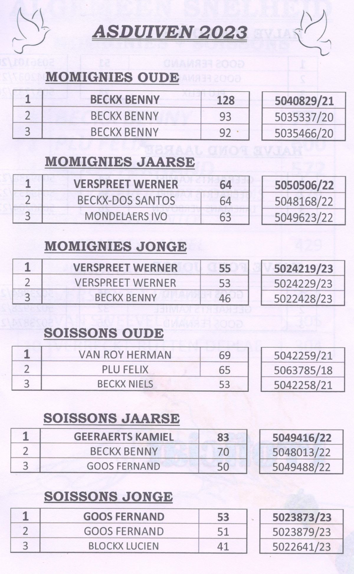 Asduif Jaarse duiven Momignies: Werner Verspreet