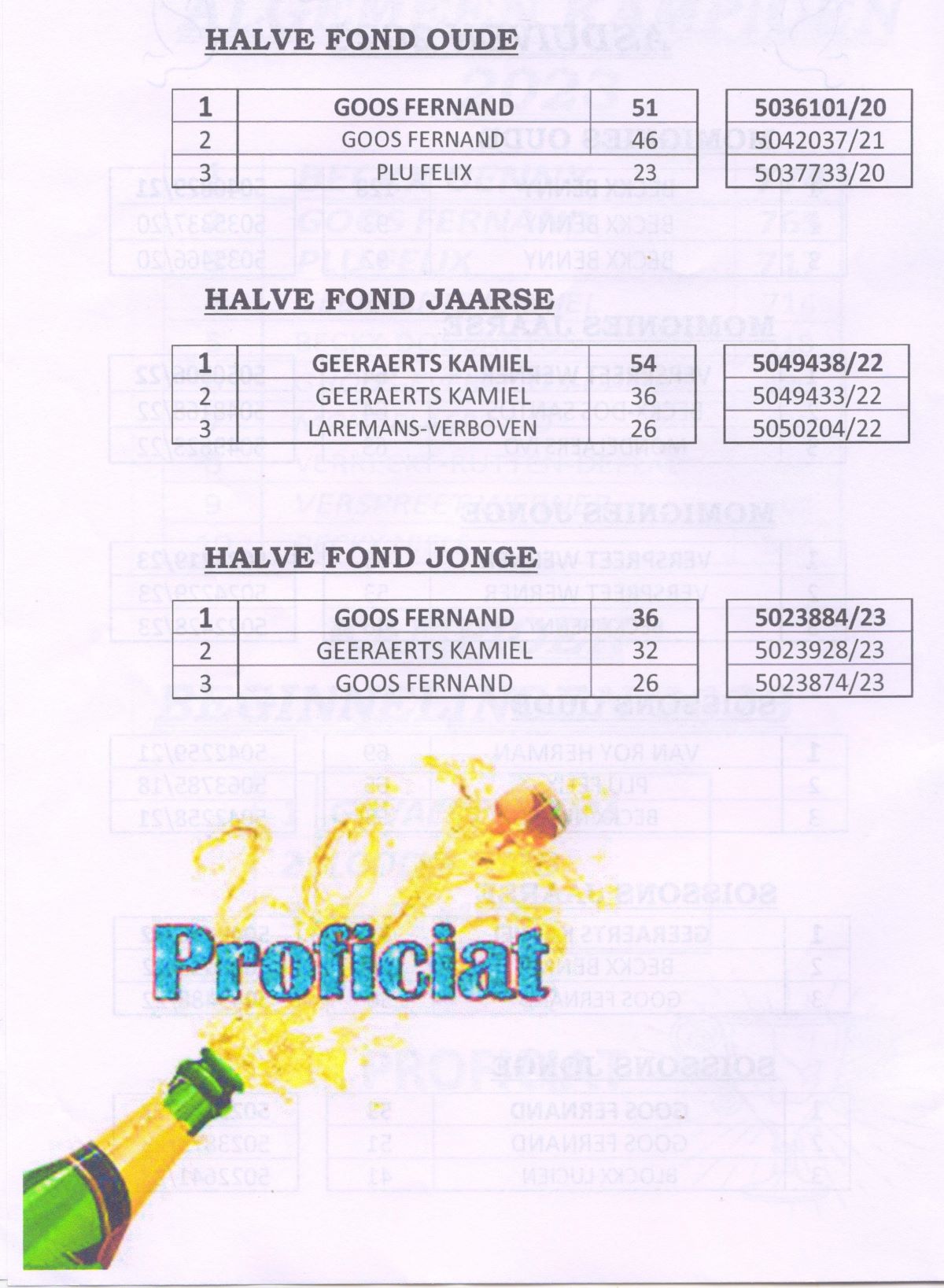 Kampioen Oude duiven Halve Fond: Fernand Goos